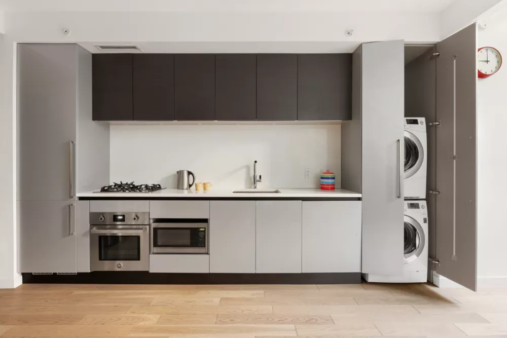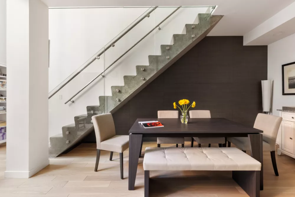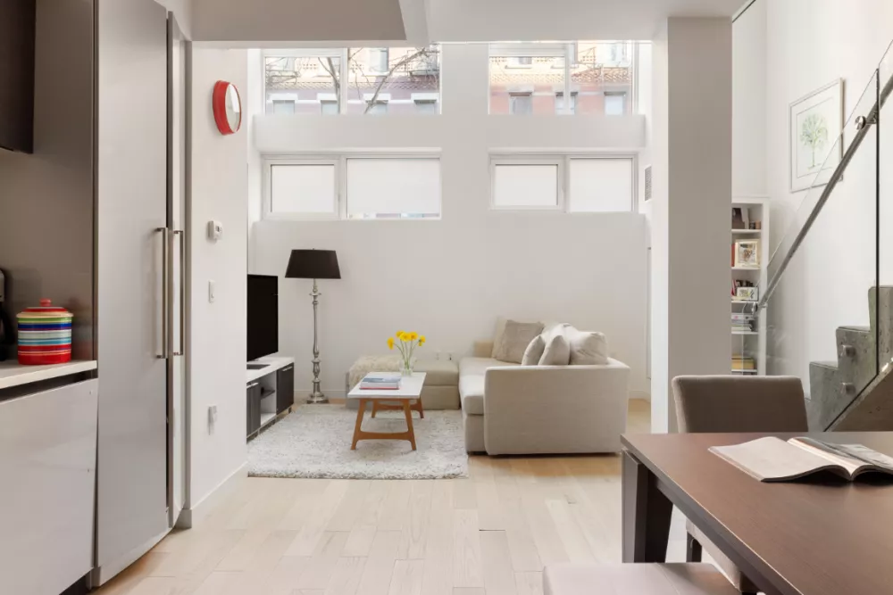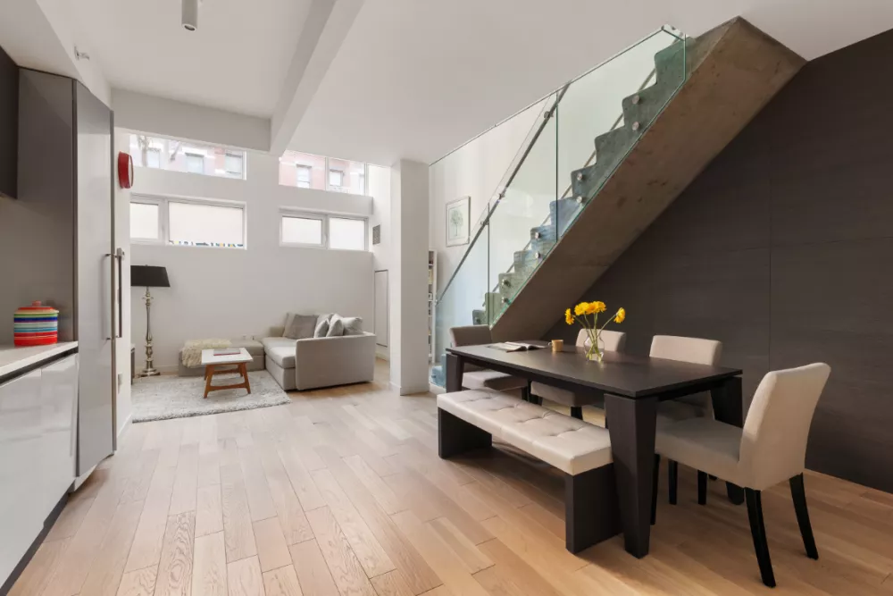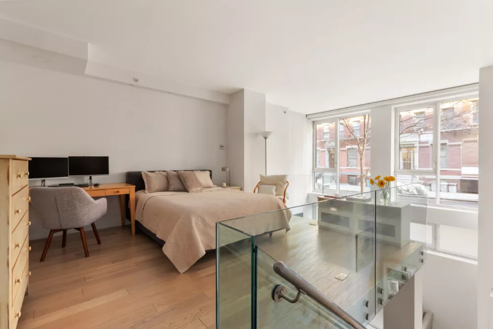 This spacious 1-bedroom, 2-bathroom duplex home features an open floor plan and is located in a full-service luxury condo building. With 20-foot ceilings and expansive windows, this residence is flooded with natural light, creating an open and welcoming atmosphere. For those seeking more space, there is the option to combine this loft with the neighboring unit to create a 2,100 sq ft home with soaring ceilings and abundant light. Please reference the alternate floor plan for more details. The interior showcases white oak hardwood floors, offering a classic and refined aesthetic. The kitchen is designed with premium appliances imported from Italy, including a Bertazzoni gas range and oven, integrated dishwasher, and Liebherr refrigerator. The Silverstone quartz countertops and backsplash, along with dark wood cabinetry, provide both style and functionality. The primary bathroom offers a deep soaking tub and separate shower with an oversized rain shower head. Both the primary and guest bathrooms feature Italian porcelain tiles and an adjustable floor heating system for comfort. 540 West 49th Street offers 24-hour lobby service, a 6,000-square-foot landscaped courtyard, two rooftop terraces, a fitness center, bicycle storage, and a pet spa. Located just minutes from the Midtown business district and the C/E subway station, this residence provides convenient access to dining, entertainment, and cultural amenities. Experience contemporary living in a prime location.