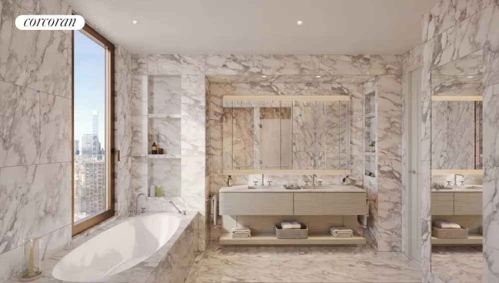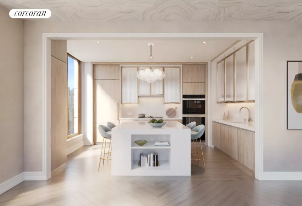 Residence 21A is a half-floor 2,171 square foot 3 bedroom, 3.5 bath home, with beautifully proportioned rooms and south, east, and west exposures. Floor-to-ceiling windows from Italy allow abundant light to stream across 5" stained oak floors. The generous living and dining spaces open to the island kitchen featuring bespoke, stained ash wood cabinetry with fluted glass upper cabinets and polished Bianco ice marble countertops and backsplash. The top-of-the-line Miele appliances suite features a speed oven and gas cooking. The stainless-steel Pro-Chef sink features a Dornbracht brushed champagne faucet with a pull-down spray. This home features a Sub-Zero wine refrigerator.