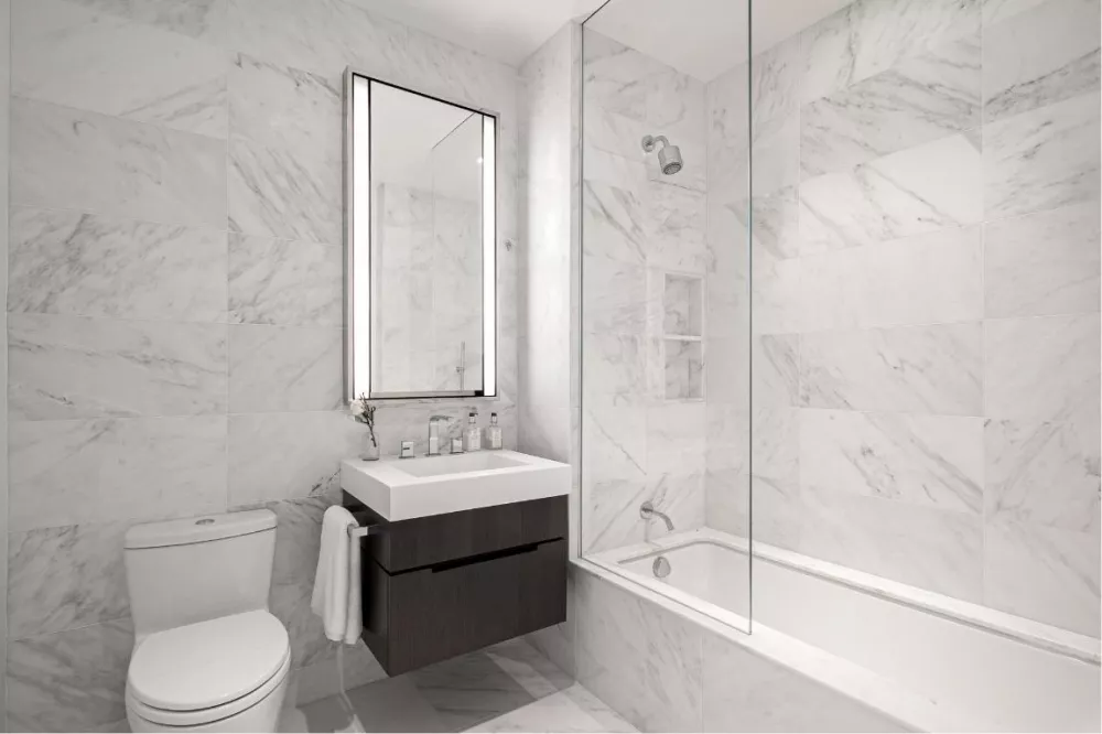 The open Scavolini Kitchen has been custom designed by Jeffrey Beers International exclusively for 108 Leonard and features a waterfall island and Calacatta Vagli marble countertops and backsplash. Generously proportioned, the kitchen is outfitted with premium Miele appliances including a 5 -burner gas cooktop with vented hood, combi steam/convection oven, electric speed oven, and wine refrigerator.