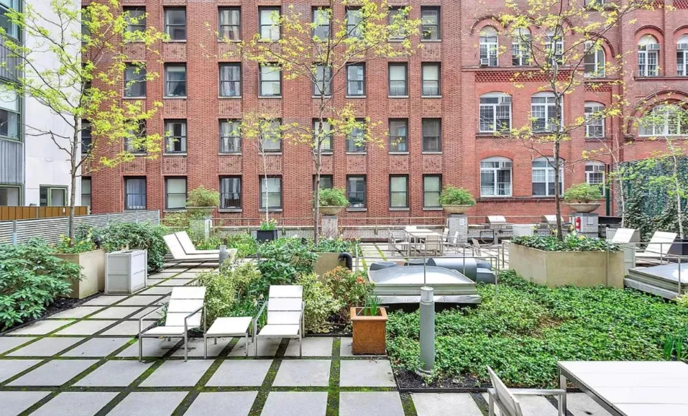 99 John Street Deco Lofts is a full-service condominium that offers a lifestyle of convenience and luxury. Residents enjoy a beautifully landscaped roof deck with stunning panoramic views of the city skyline and the river, perfect for unwinding or hosting gatherings. The building also features a lush garden equipped with four BBQ grills, a state-of-the-art fitness center, a billiards room, and a tenant lounge for socializing or relaxing. Additional amenities include valet service, a 24-hour doorman, cold storage, laundry facilities, and even an onsite supermarket for ultimate convenience.