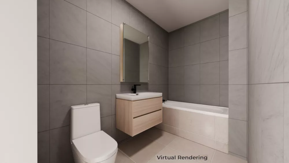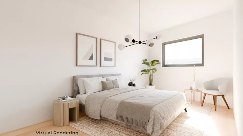Residence 2 features a spacious one-bedroom, one-bathroom layout within 674 sq ft of interior space. The generously sized bedroom comfortably accommodates a king-sized bed. This apartment is equipped with modern conveniences, including a thru-wall AC, and a dishwasher. Additionally, it boasts a private balcony, which provides a peaceful retreat.