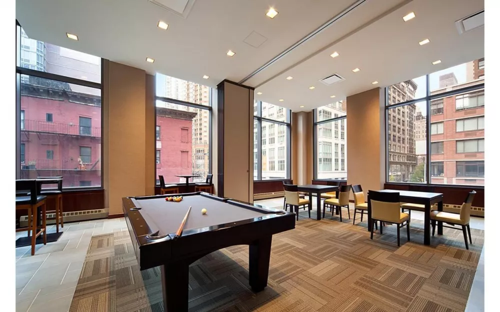 Building amenities include a 24-hour doorman/concierge with top-of-the-line valet services, a fitness center with a basketball half court, an entertainment lounge with two large-screen TVs, a copper fireplace, a dining area with a catering kitchen, a billiards room, an outdoor landscaped Zen garden, and downtown's best roof deck with stunning views of Queens, Brooklyn, New Jersey, and iconic buildings. The rooftop pet run is perfect for dog lovers. This is an outstanding opportunity in one of the best neighborhoods in Manhattan. Deeded storage unit included.