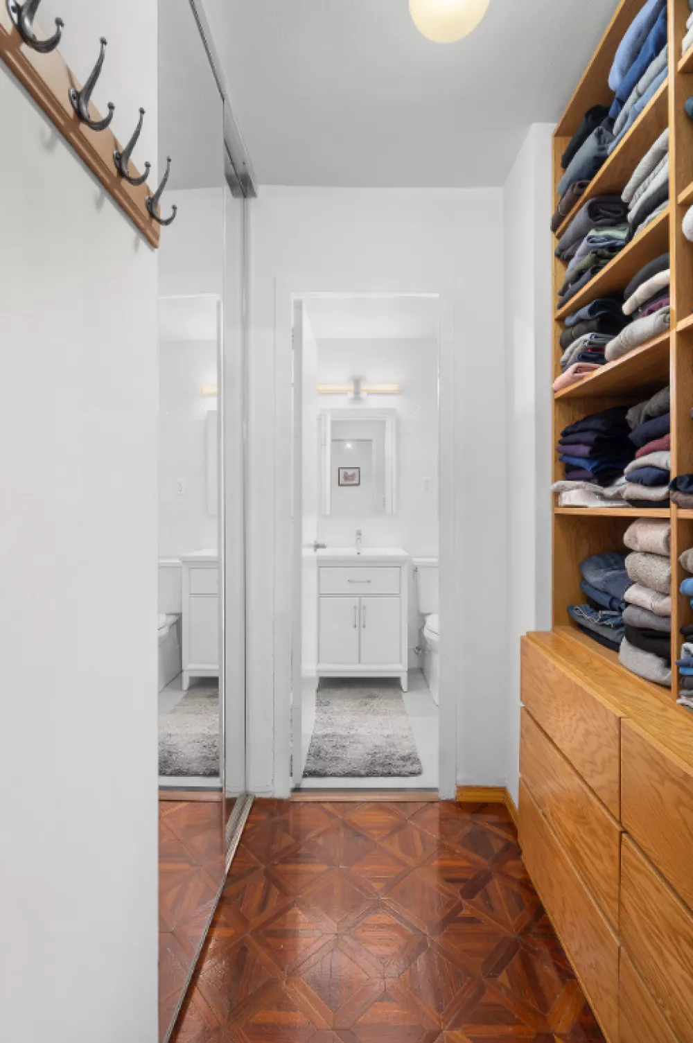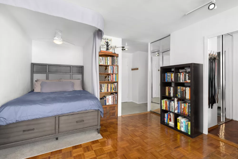 This bright and quiet alcove studio features a gut-renovated kitchen and bathroom plus LOW maintenance! Located on the 10th floor with Eastern exposures overlooking the tranquil courtyard below, this desirable apartment has a living room large enough to fit a dining room table and there are several large closets throughout including a dressing area with customized built-ins. Other features include a sleeping alcove that fits a queen-sized bed and a glass enclosed shower.