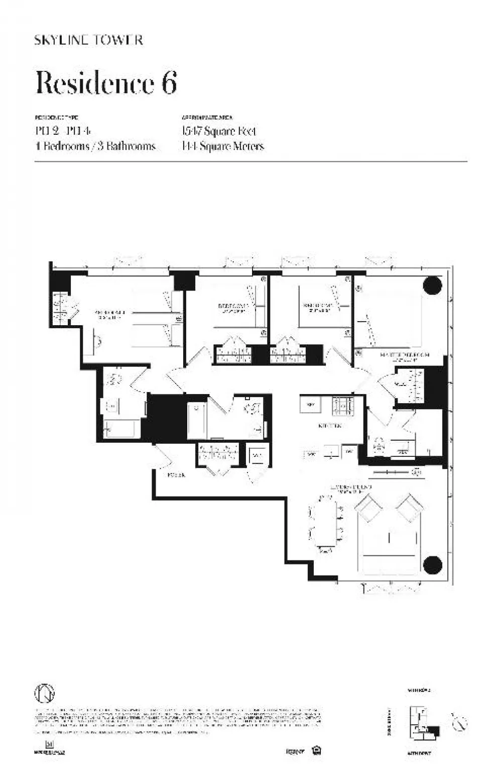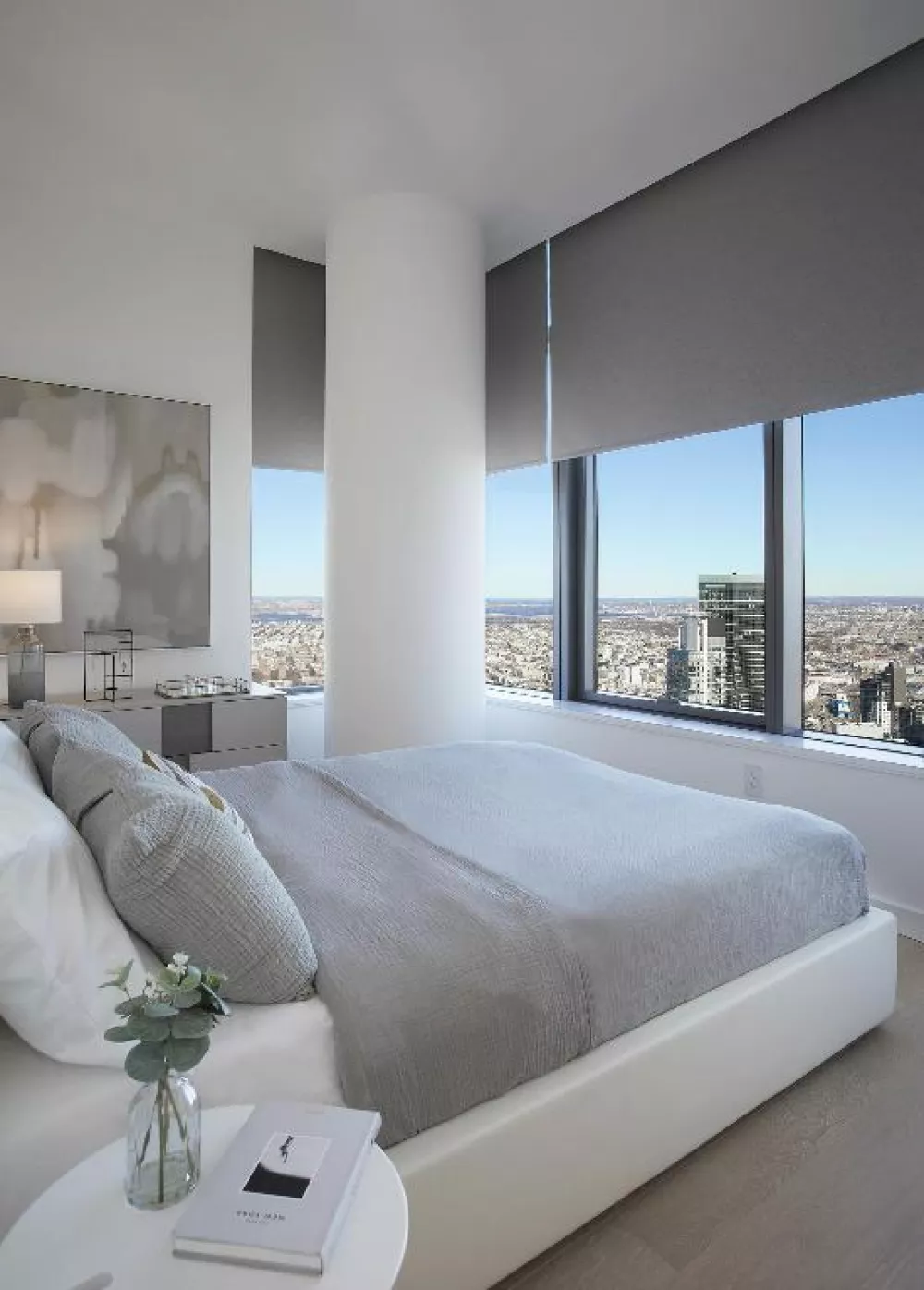 This gracious high ceiling Penthouse four bedroom, with a northeast south triple exposure, is a generously-sized residence highlighted by abundant natural light that pours in through the large curtain wall-style windows. You’ll enjoy the distinctive European white oak engineered wood flooring throughout and the side-by-side bedroom layout, which the primary features a large master with his and hers walk-in closet and the second bedroom is just as appealing, with a full-size bathroom for its private use.