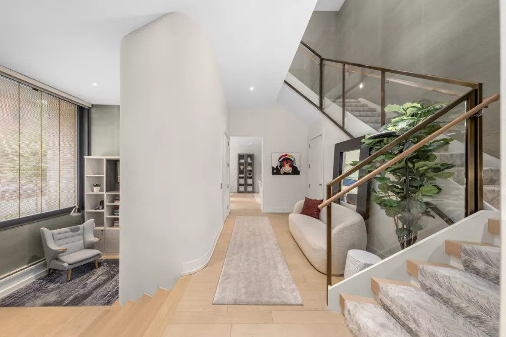 This sun drenched south facing residence with lofty ceilings height designed using a palette of natural, organic elements with an array of sophisticated fixtures and finishes. The contemporary open layout is complimented by wide-plank white-washed oak floors that seamlessly flow from room to room along with oversized windows that capture the southern light over the two floors.