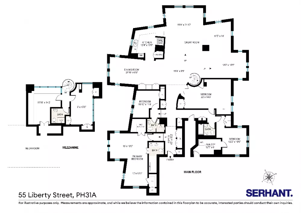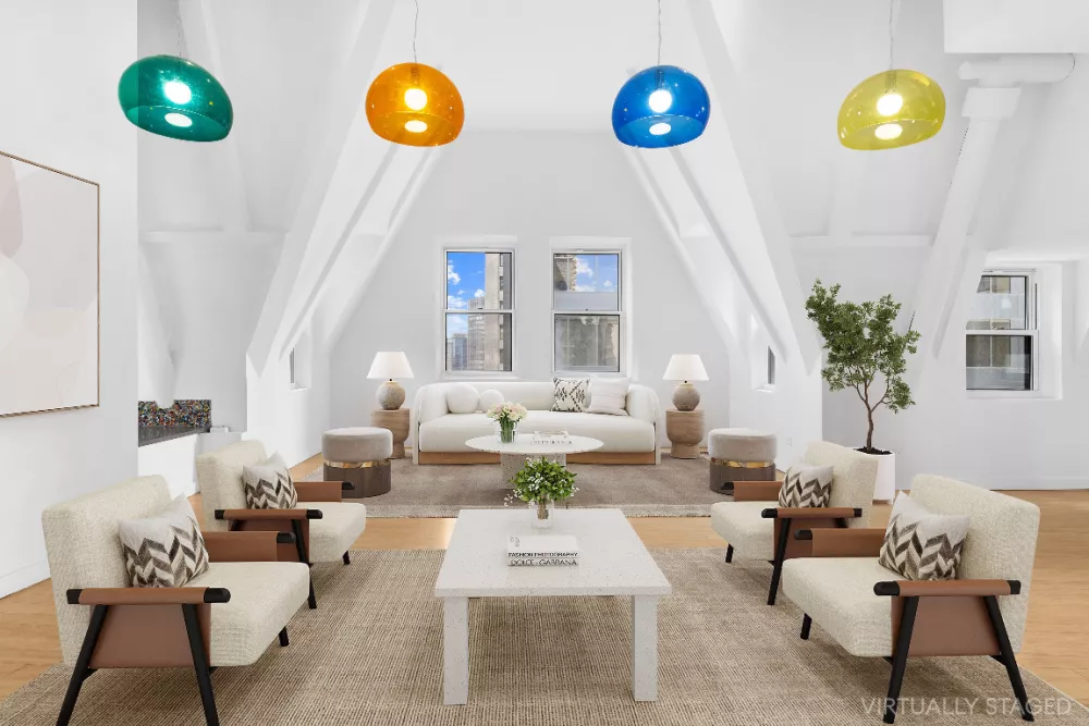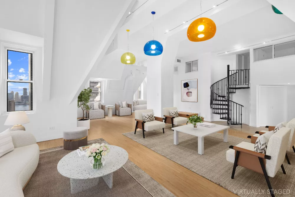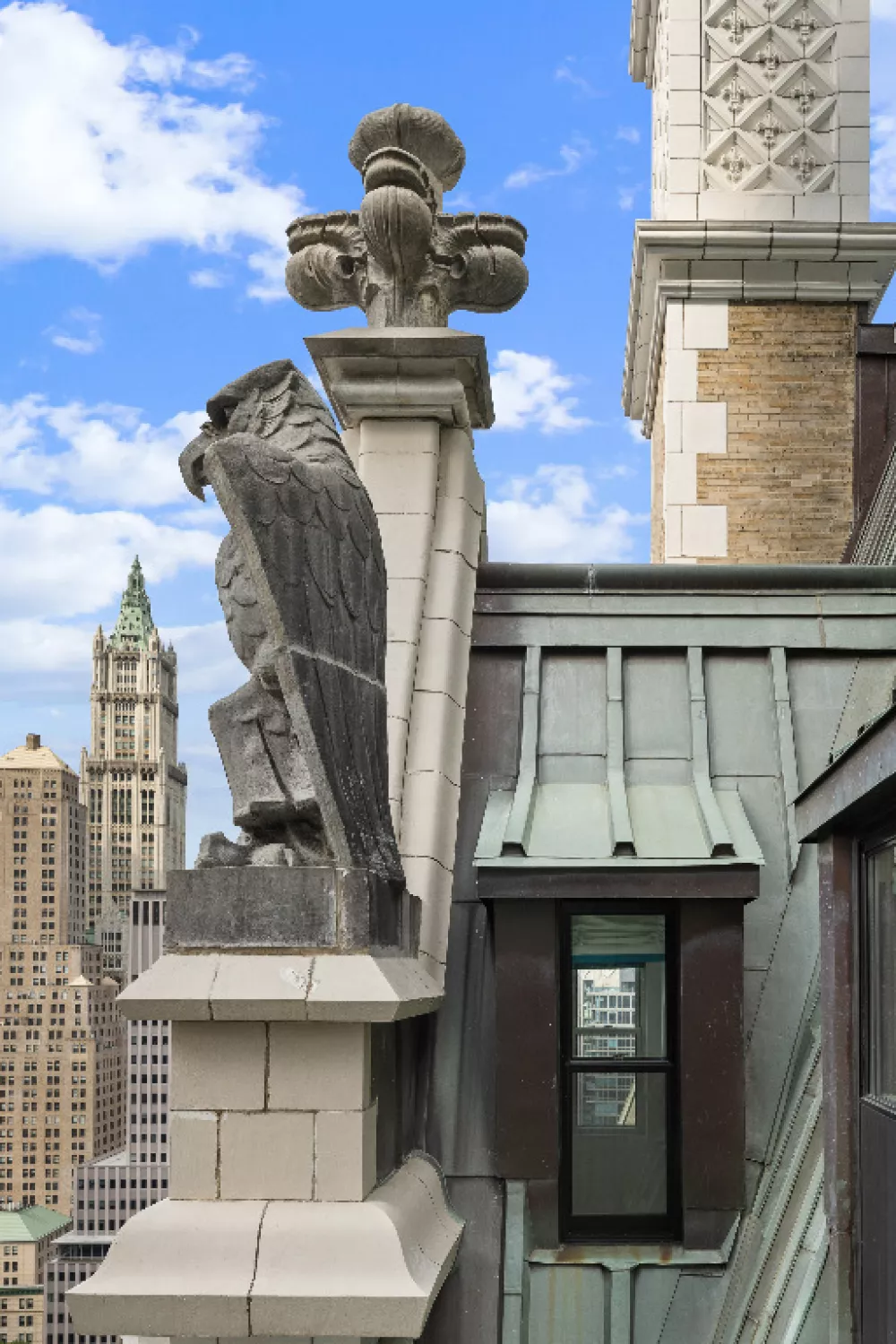 Welcome to Penthouse 31A at Liberty Tower, one of Manhattan's first skyscrapers with a storied history! Unit PH31A occupies the entire floor of the building and is one short flight up from the 30th floor elevator landing. Its new resident will experience four exposures with panoramic views of the city including the historic Financial District skyline and the Hudson and East Rivers. This unit enjoys the unique status of being the former attic of the building which comes with special architectural details such as the sloped and vaulted ceilings as well as exposed beams and pipes. Spanning over 3,000 sq ft on the main level and over 600 on the mezzanine, this home features 4 bedrooms, 4 bathrooms, separate dining and living areas, a dedicated laundry room, as well as two home office/flex rooms on an additional mezzanine level. The separate windowed chef's kitchen has a Viking stove and Subzero refrigerator and the home has central A/C. Closets and storage spaces abound throughout this home. Liberty Tower at 55 Liberty Street was built in 1909 as a commercial office building with high-profile tenants such as president FDR until its conversion in 1979 to a residential cooperative building. At the time of its construction it was believed to be the world's slimmest skyscraper, built in a Gothic Revival style with limestone and white terracotta faade that includes carvings of gargoyles, lions, falcons, and other guardians. Now a landmarked building, Liberty Tower is a full-service cooperative with 24-hour doormen, porters, and live-in resident manager. It allows pied-a-terres and subletting with board approval. Its enviable location in the heart of the Financial District of Manhattan is in close proximity to all major subway lines, the Oculus and Brookfield Place shopping centers, Whole Foods, and the South Street Seaport.