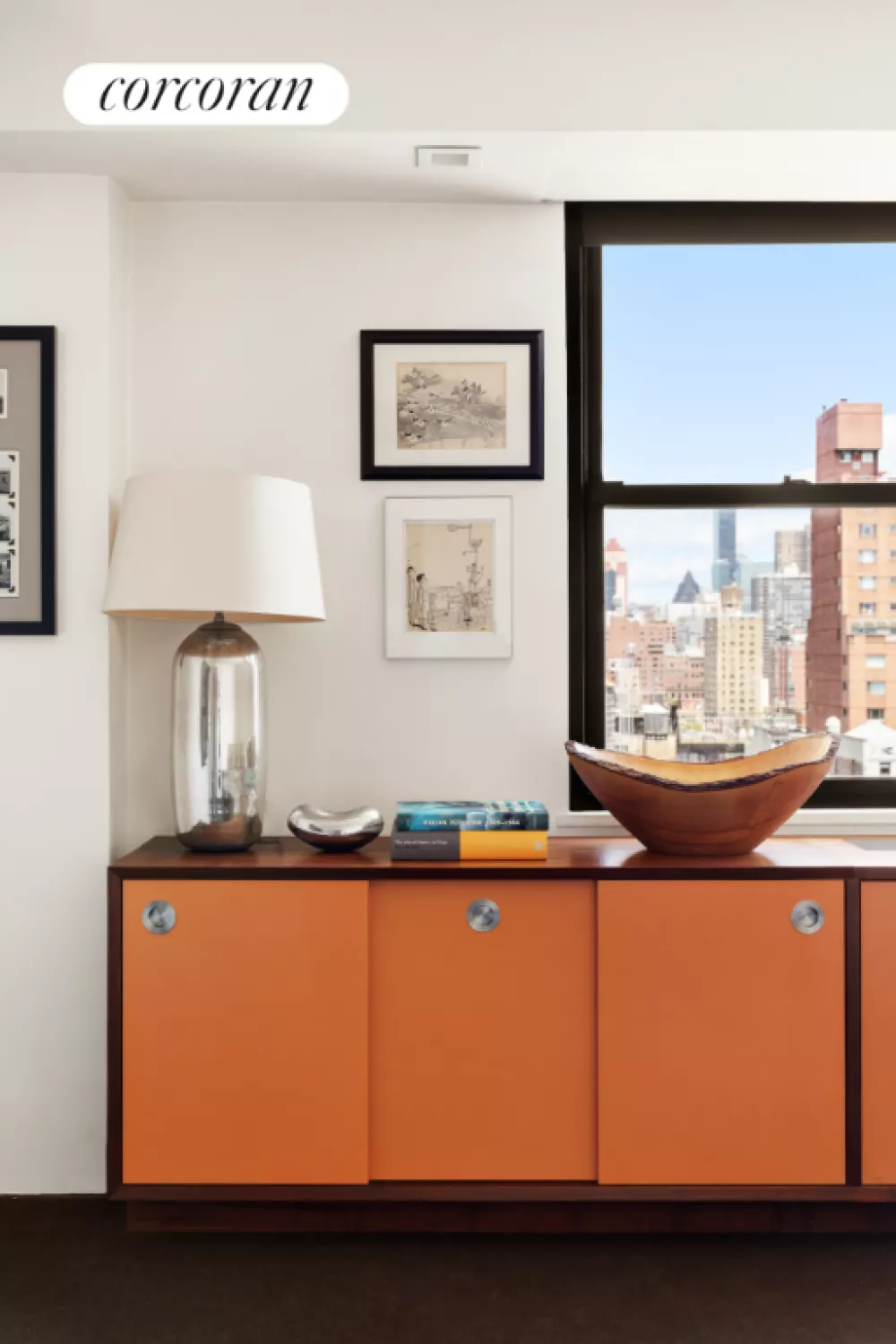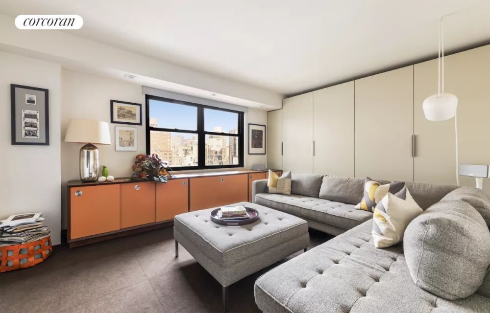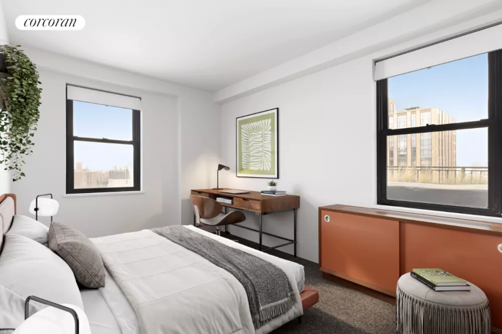 Inside this seamlessly combined, sophisticated residence, oversized windows on three exposures capture extraordinary natural light and open-sky views. Ceilings dotted with Artemide, Flos, Boi and Marset lighting by designers Fabian Dumas, David Weeks, Jasper Morrison and Joan Gaspar rise above wide-plank PID hardwood, Flor carpeting, and oversized ceramic tile. Custom walnut built-ins add sleek storage are located exactly where they are needed, while extensive soundproofing creates a pin-drop quiet ambiance. The two south-facing terraces are beautifully positioned alongside the kitchen and living space for seamless indoor-outdoor living. Enjoy drinks on one terrace and lavish meals on the other terrace, while dramatic skyline views stretch out before you. Water hookups, irrigation systems, electricity on each terrace facilitate your gardening endeavors and allow for perfect mood lighting.