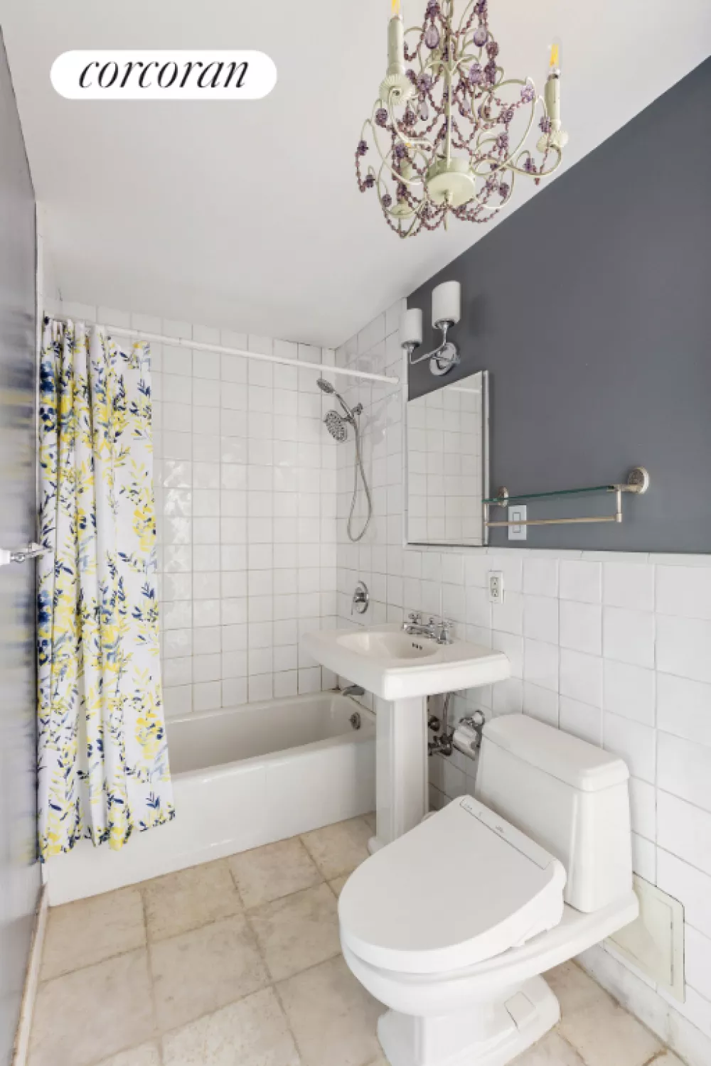 The second bedroom, currently set up as a bonus room connected to the living room, is generously proportioned, multifunctional, has a deep reach in closet, and also has open northern views. It is also home to the grandfathered in washer dryer that are rare to find within the coop and not permitted in the majority of homes. Adjacent to the second bedroom is a stylishly renovated bathroom with a stall shower and also acts as the apartment's guest bathroom.