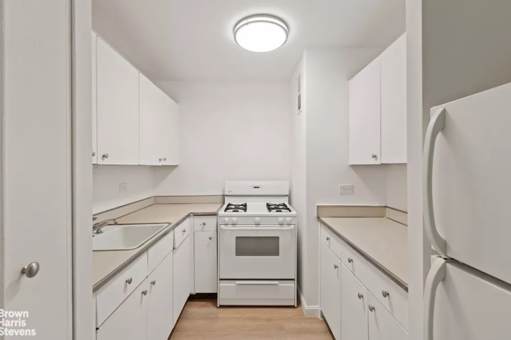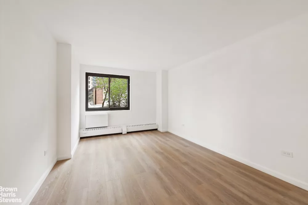 The living/dining room is a remarkable size. There is more than enough space for a large living area with plenty of room left over for a completely separate dining area. The amply-sized kitchen is currently a blank canvas awaiting your touch to turn it into the chef's kitchen of your dreams. The king-sized bedroom shares the same great city views as the living room. All floors are new. The apartment also benefits from excellent storage in the form of four large closets.