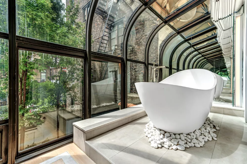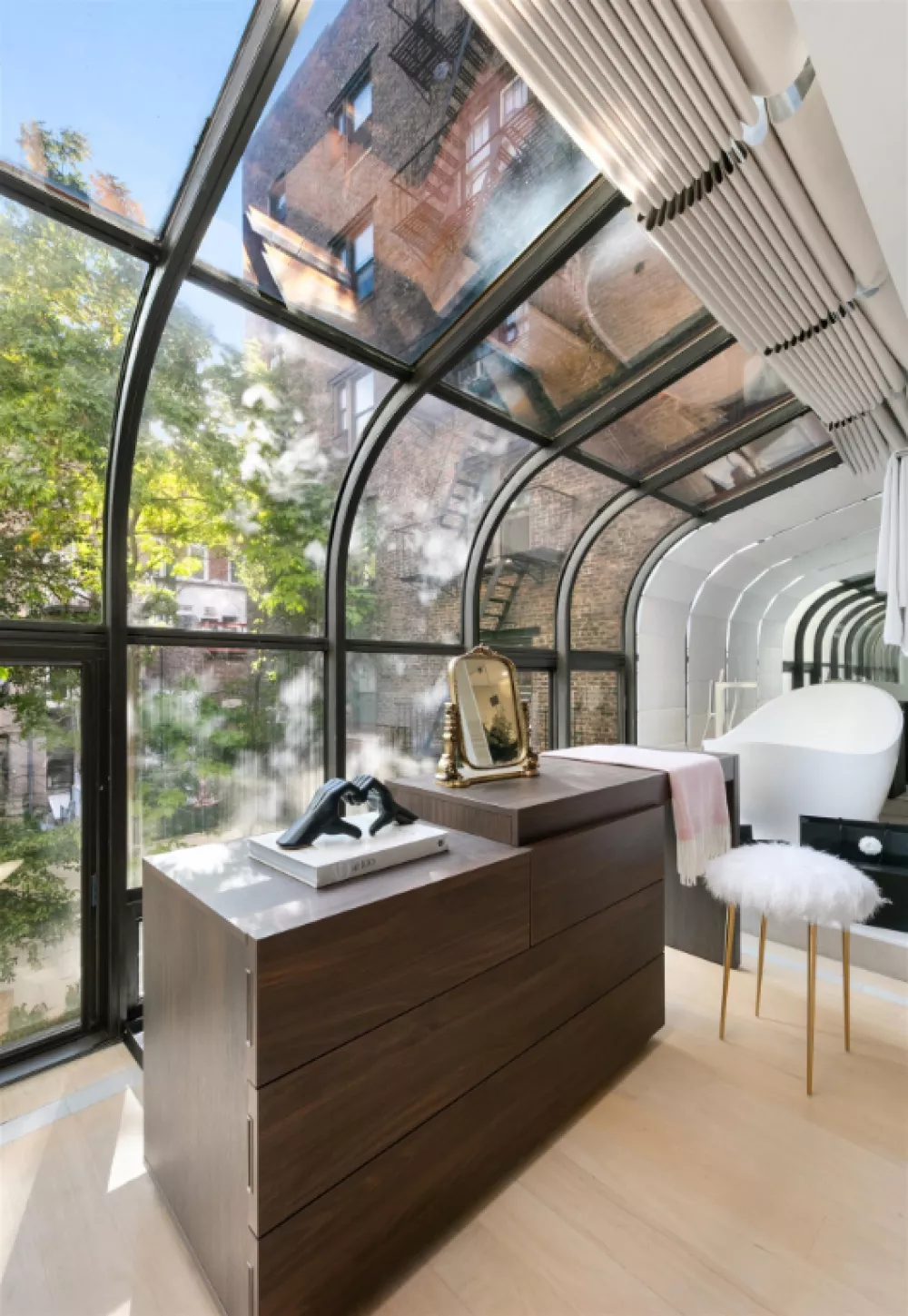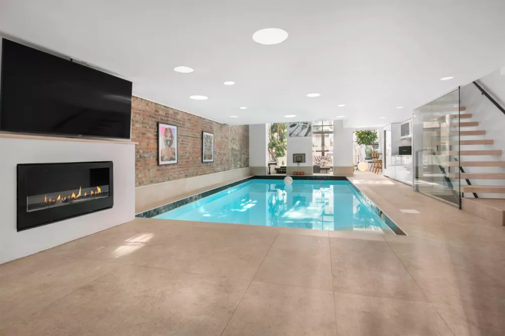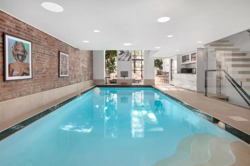 The triplex offers 2 bedrooms, 3 and a half bathrooms, and an office. Featuring your very own private swimming pool, exercise or relax year-round in a dramatic 30ft long, 8ft deep heated saltwater pool beneath a double height solarium. Enjoy the poolside wet bar then luxuriate in your dry sauna. Self-irrigated planters throughout the house and garden provide a resort feel throughout the space.
