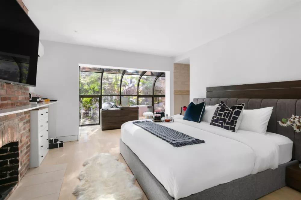 The open living and dining room provides the perfect space for entertaining. The home features 4 decorative fireplaces throughout. The primary bedroom comes with a luxurious bathroom suite, including a free-standing soaking tub beautifully placed in the solarium overlooking the garden. The second bedroom includes 3 closets and ensuite bath.