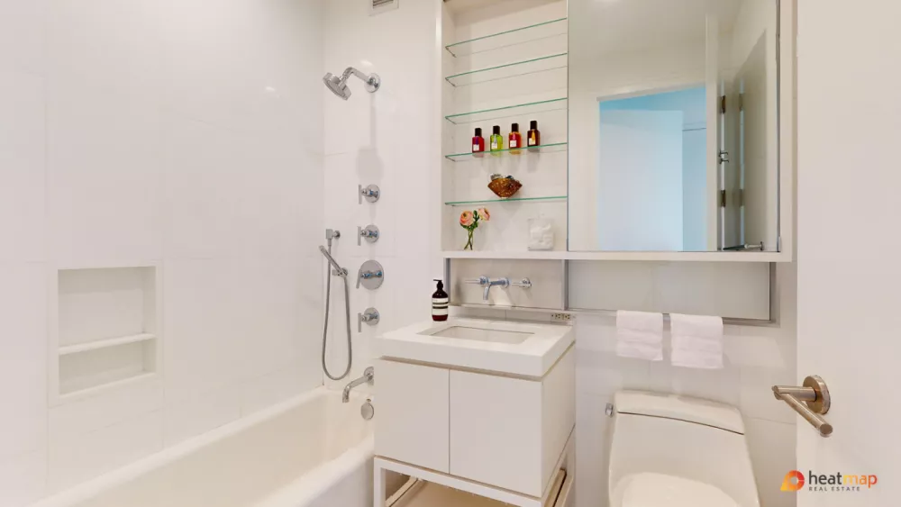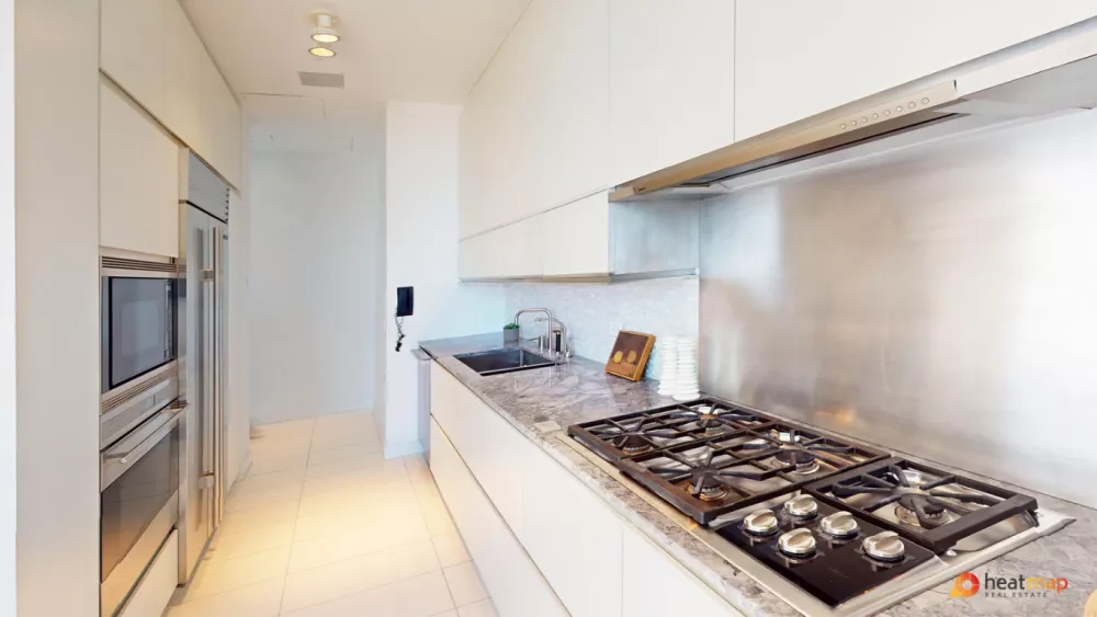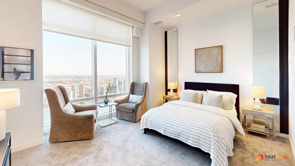 Breathtaking views from this stunning 82nd-floor residence make it feel like you're truly living above the city. This meticulously renovated 3-bedroom, 3-bathroom home, designed by the renowned Stumer & Associates, combines modern luxury with exceptional craftsmanship. Spanning 2,476 square feet, the home boasts elegant white Thassos marble floors and panoramic views of Central Park.