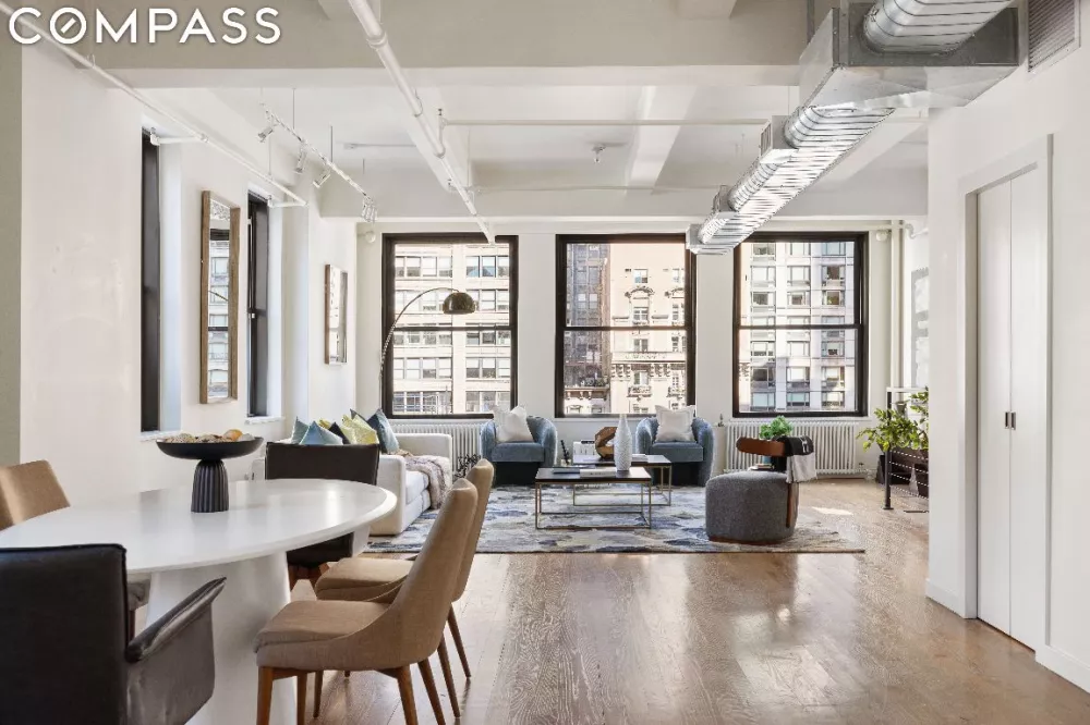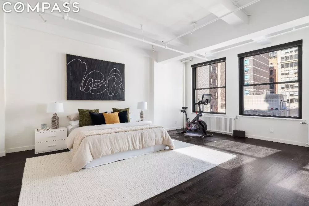 Welcome to 24 West 30th Street, a full-floor duplex loft that offers stunning views of the Empire State Building and Hudson Yards. Located in NoMad, this 3-bedroom, 3-bathroom prewar condominium spans an impressive 2,800 square feet and features beamed 11-foot ceilings. With 22 expansive windows providing north, south, east, and west exposures, this home boasts an airy, sun-drenched atmosphere.
