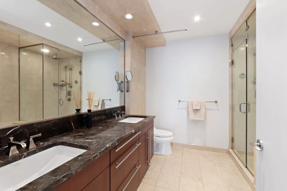 - Renovated en-suite bathroom with dual sinks, a walk-in shower, and a separate oversized bathtub