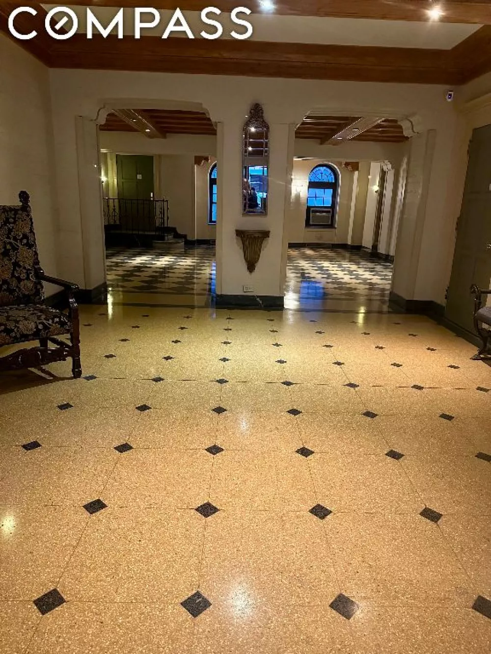 Step inside to discover a spacious layout with a large closet in the entry foyer, a spacious living room, windowed eat-in kitchen with stainless steel appliances, quartz countertops, WASHER/DRYER, ALL brand new! Refinished beautiful parquet floors, pre-war beamed ceilings and arched doorways throughout.