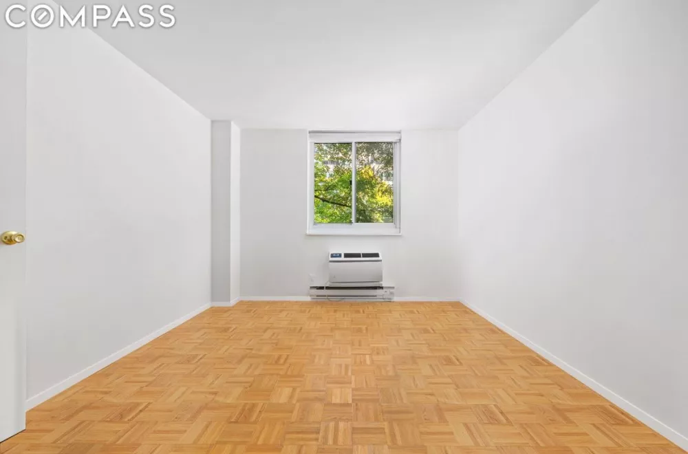 Enjoy stunning park views from the living/dining and large bedroom. The apartment features a pass-through kitchen with full-size appliances and ample closet space throughout. The home includes a full bathroom and year-round comfort with through-the-window air-conditioning.