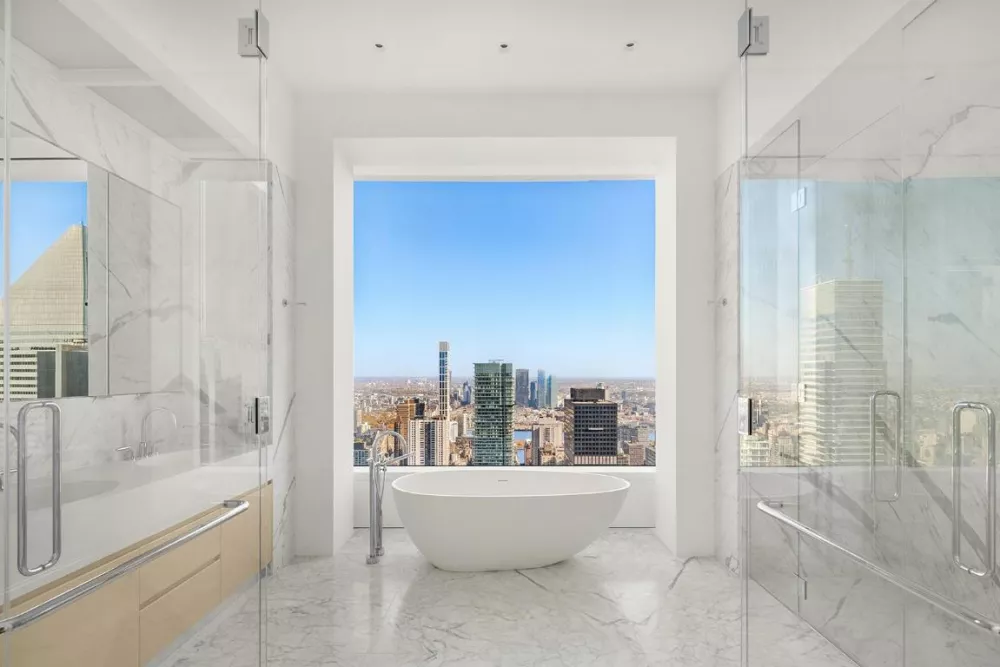 As you step into your private foyer, you're welcomed by sweeping views of the city and Central Park through thirteen floor-to-ceiling, 10" x 10" windows. The vistas to the north, east, and south merge nature and urban splendor, all framed by soaring 12'6" ceilings that amplify the sense of space and light.