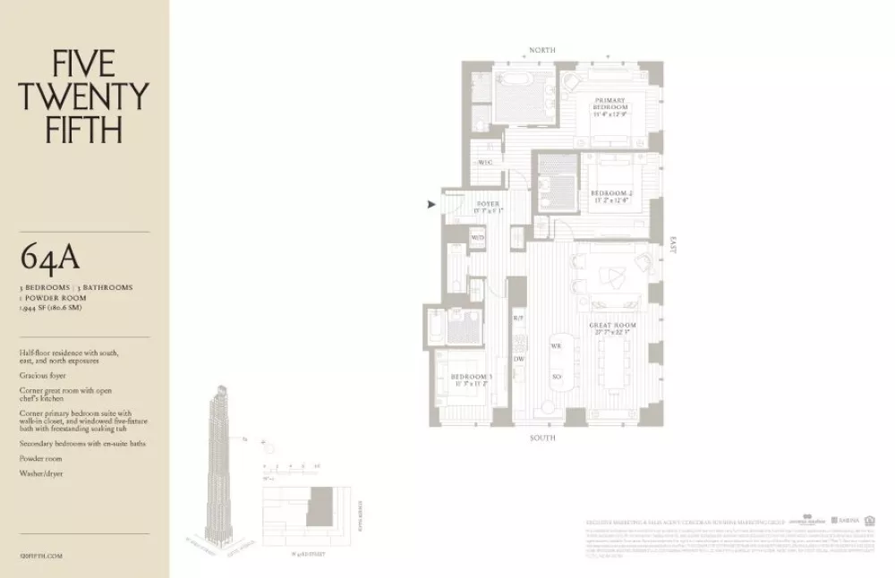 Exclusive Marketing and Sales Agent: Corcoran Sunshine Marketing Group. The complete terms are in an Offering Plan available from the Sponsor, 520 Owner 2 LLC, C/O Rabina Properties, LLC, 505 Fifth Avenue, 27th Floor, NY, NY 10017 under File No. CD 23-0148. Property Address: 520 Fifth Avenue, NY, NY 10036. Equal Housing Opportunity.