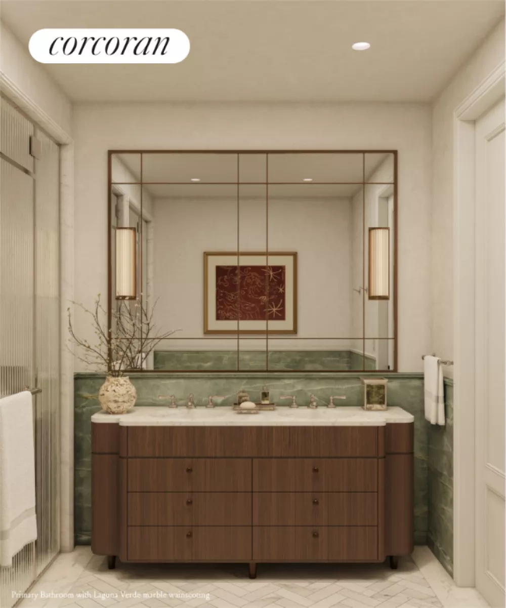AD100 designer Vicky Charles, of Charles & Co, has curated timeless interiors throughout the building, reflecting the classic sophistication of her work for Soho House and a roster of Hollywood A-listers. Crafted finishes with sculptural qualities include beautiful casings, trim and 7-inch-wide plank white oak floors. Fully vented kitchens feature islands clad in reeded-walnut, honed Taj Mahal quartzite counters, a suite of Miele appliances, and a beautiful Italian five-burner range by Ilve. Primary bathrooms feature radiant heated floors, walnut furniture-quality millwork, medicine cabinetry with integrated electric outlets and mirrors inside and out, and walls and flooring clad in Calacatta Lincoln marble complemented by Laguna Verde marble wainscoting. Each bathroom, including the secondary bathrooms and powder rooms, is designed by Charles & Co leaving wall space for owners to personalize their interiors to their taste. Year-round comfort is assured by a discreet ceiling hung four-pipe fan coil HVAC system. 520 Fifth Avenue anticipates LEED Gold, WELL, and WiredScore certifications.