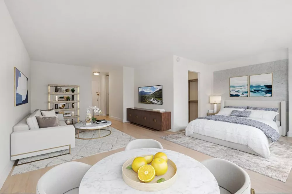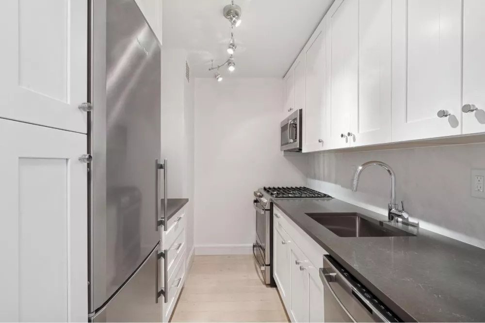 Newly and beautifully renovated and barely lived-in oversized, sunny, and serene alcove studio state of the art kitchen w/ high end appliances, 1 gorgeous bathroom with marble floors and Kohler fixtures, lovely finishes throughout including engineered hardwood floors, and pretty, Eastern, tree-lined street views toward Lincoln Towers' beautifully planted garden courtyard.