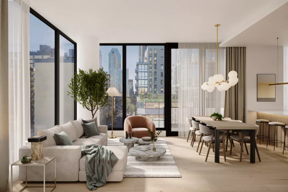 Mason LIC is a stunning new luxury condominium with part-time door attendants, a package room, an Amazon Hub location, bicycle storage, a private lounge, a fitness center, and an inviting outdoor terrace with several seating areas and grilling stations. On-site parking is available for purchase.