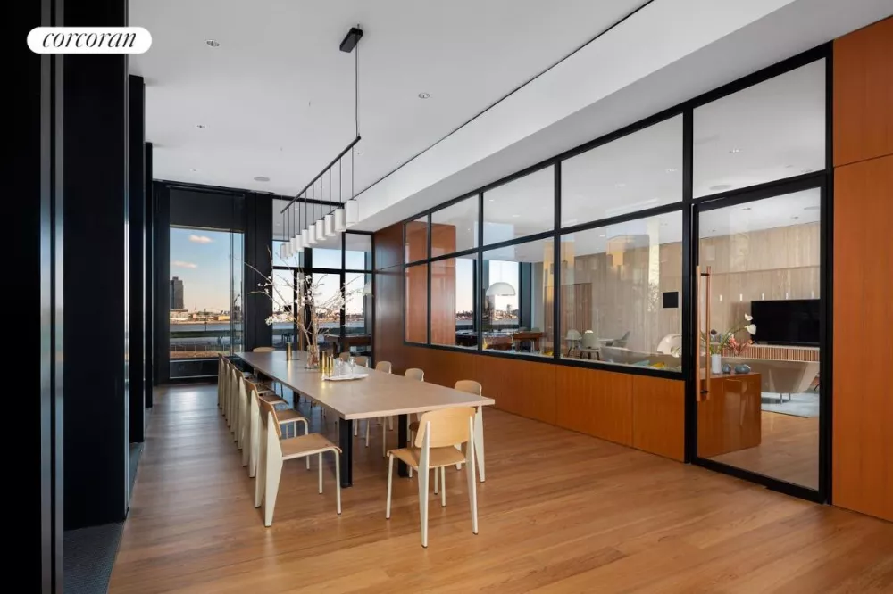Designed by Meier Partners, the residence interiors are a striking contrast to the black glass exterior, reflecting a white color palette. Living spaces are immersed in natural light radiating through the floor-to-ceiling windows. White oak floors are found in all residences and open kitchens boast white Calacatta Lincoln marble counters, Dornbracht fixtures and Gaggenau appliances clad in custom-crafted Italian white lacquer. Each residence is equipped with a built-in Crestron smart home system that regulates temperature, lighting and the motorized window shades. These functions can be seamlessly controlled by residents through any iOS or Android device.