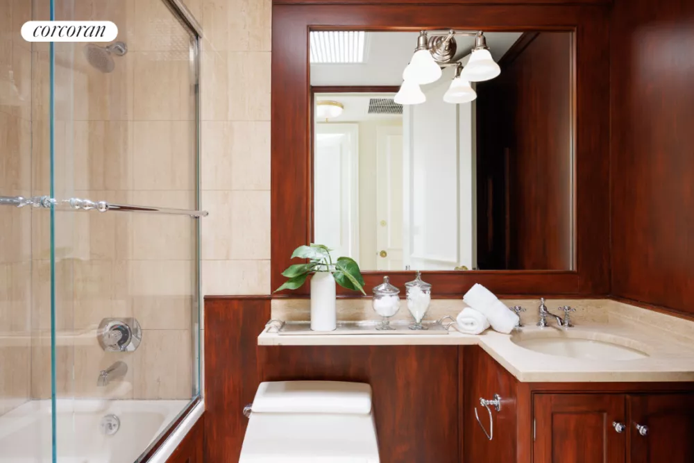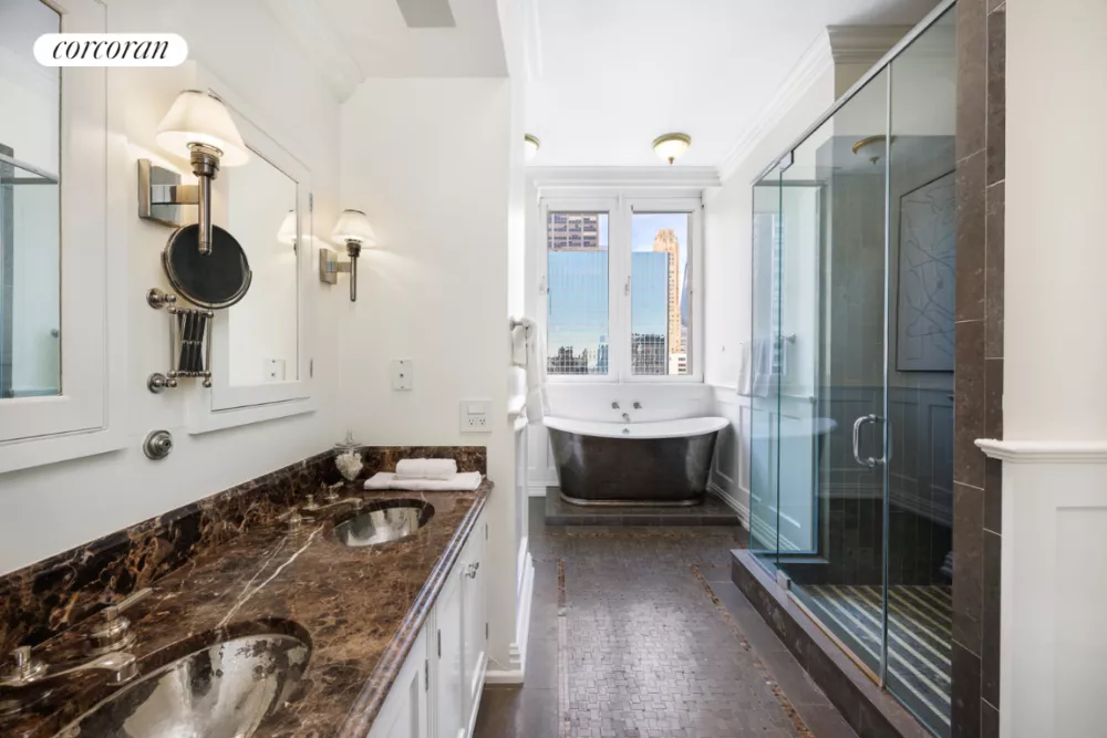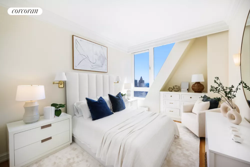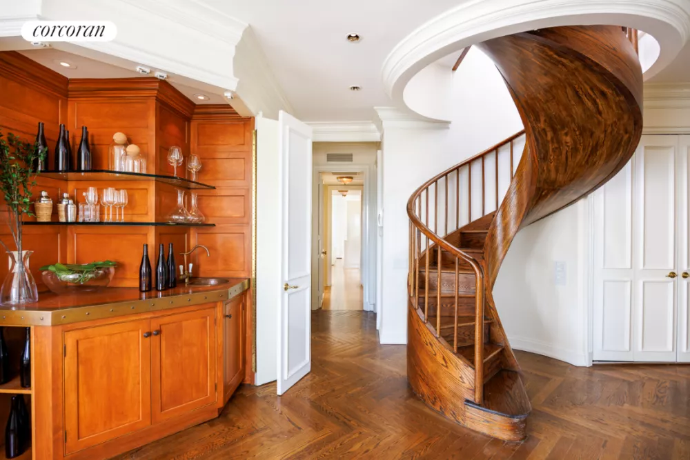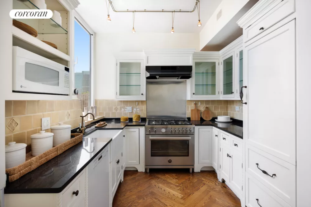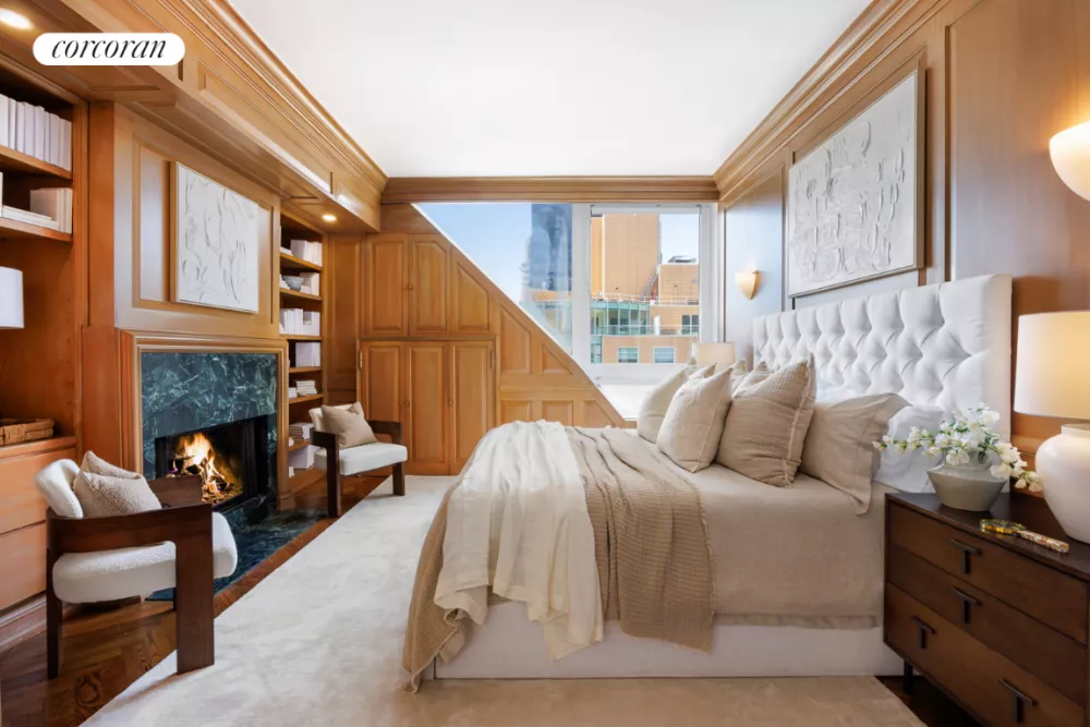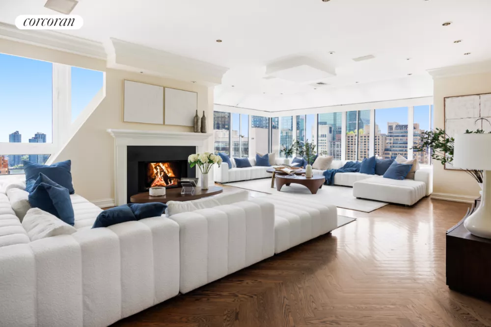 The living spaces within this penthouse are thoughtfully designed to cater to every need. Off a semi-private elevator landing is an entrance gallery, an elegant powder room and a coat closet. A corner living room with a wood-burning fireplace sets the tone for sophisticated gatherings; the room is 27'3" long and has two walls of windows with picturesque views and a wet bar with a sink. There is a formal dining room which offers the perfect setting for hosting memorable dinners, and a windowed kitchen.