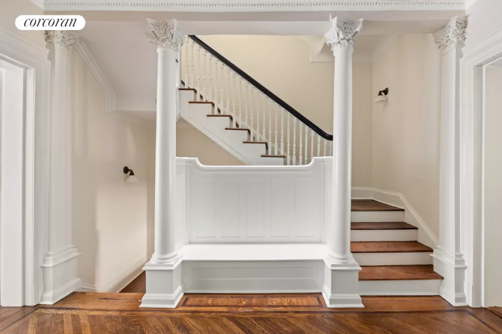 Overview: This radiant sunlit property, brimming with Pre-War charm, has been fully updated to seamlessly blend exclusive comfort and modern conveniences in an enchanting pre-war setting. Enjoy an abundance of space in this exquisite townhouse, offering a formal living room and dining room, a chef's kitchen and family room along with four generously proportioned bedrooms and three wonderfully renovated bathrooms spread out over four floors. Each room is a sanctuary, with high ceilings, exquisite architectural details and gleaming hardwood parquet flooring that echo the refinement of classic New York in the late 19th Century. The townhouse is flooded with northern and southern exposure light, highlighting the intricate original detail that carriers throughout the property. You'll find the convenience of a washer/dryer on the top floor, making laundry a breeze. The home has a newly installed ductless cooling and heating system with controls in every room. In addition, this rare gem hosts five decorative fireplaces, setting a perfect scene for those chilly fall and winter nights. Outside, the townhouse boasts an exclusive garage offering storage space, an immense luxury to have in bustling New York City. Although this building is pre-war, it's been superbly preserved and contains the distinguished style associated with such historical New York City homes.