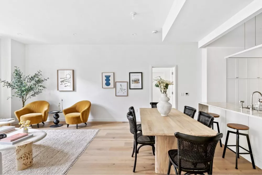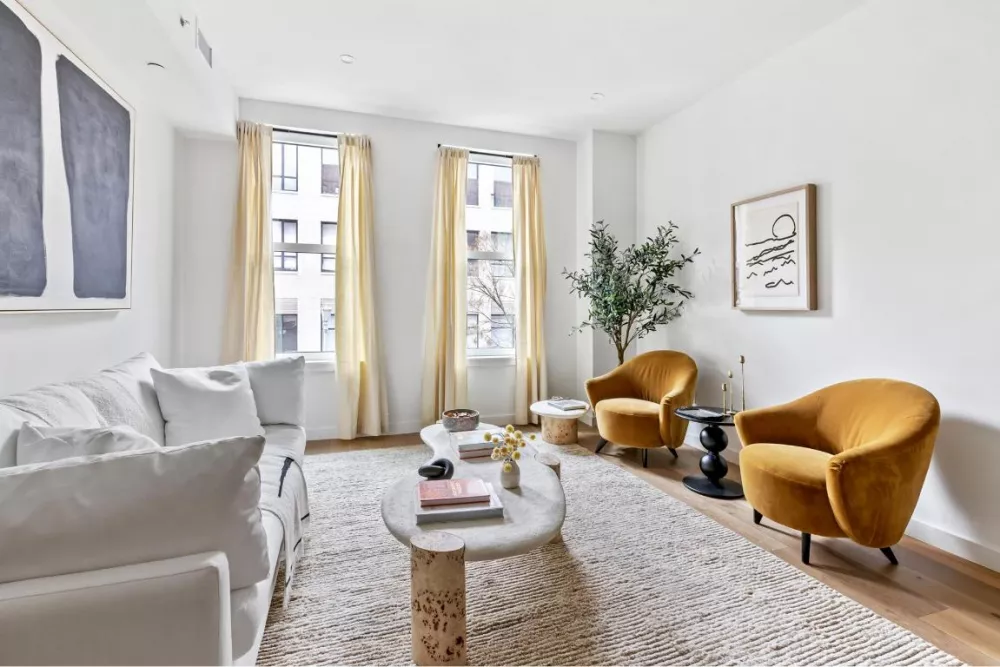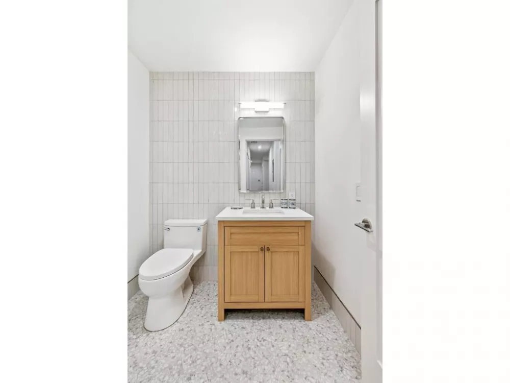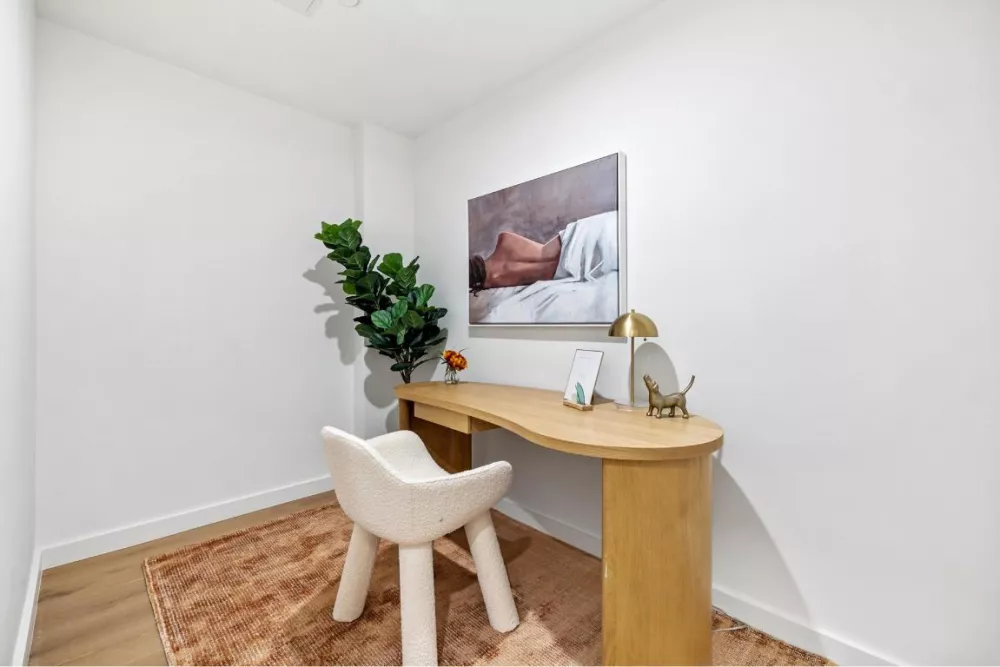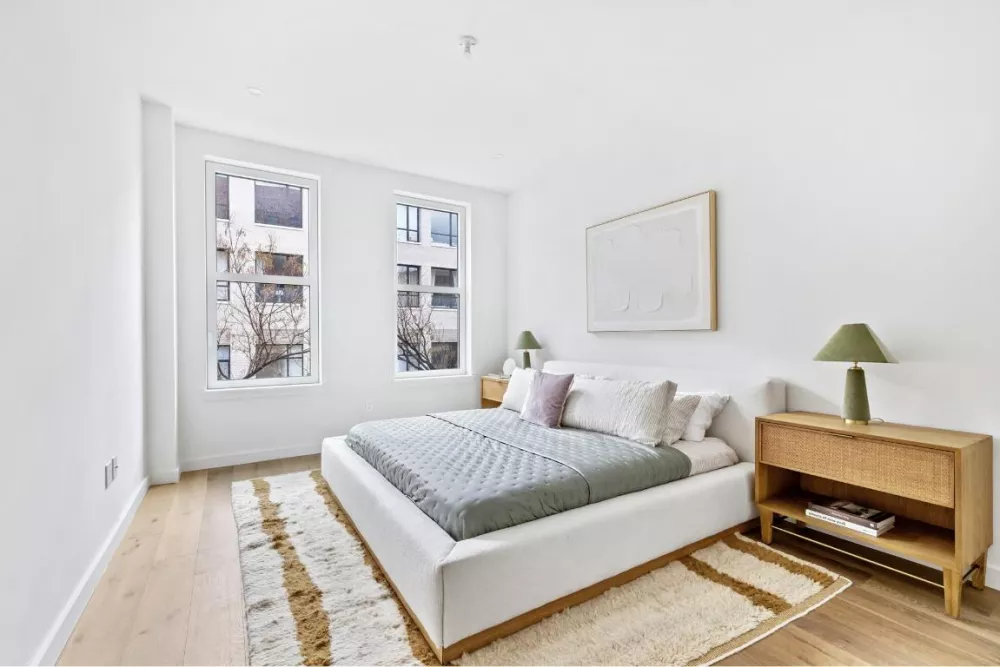 Unit 2E is a massive home boasting 2 bedrooms, 3 baths in 1531 sqft of indoor space and an additional home office. As you enter the spacious living room the apartment opens to reveal a meticulously designed, generous open-concept space. The organic flow of the rooms pulls you through the welcoming living room / dining area with the adjacent kitchen nearby. There is more than enough room to entertain a crowd or enjoy a quiet evening. Beautiful white oak flooring ties the space together and adds warmth to the rooms.