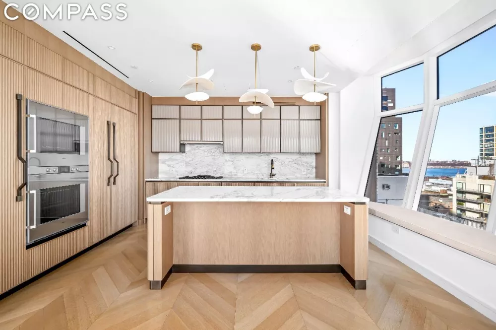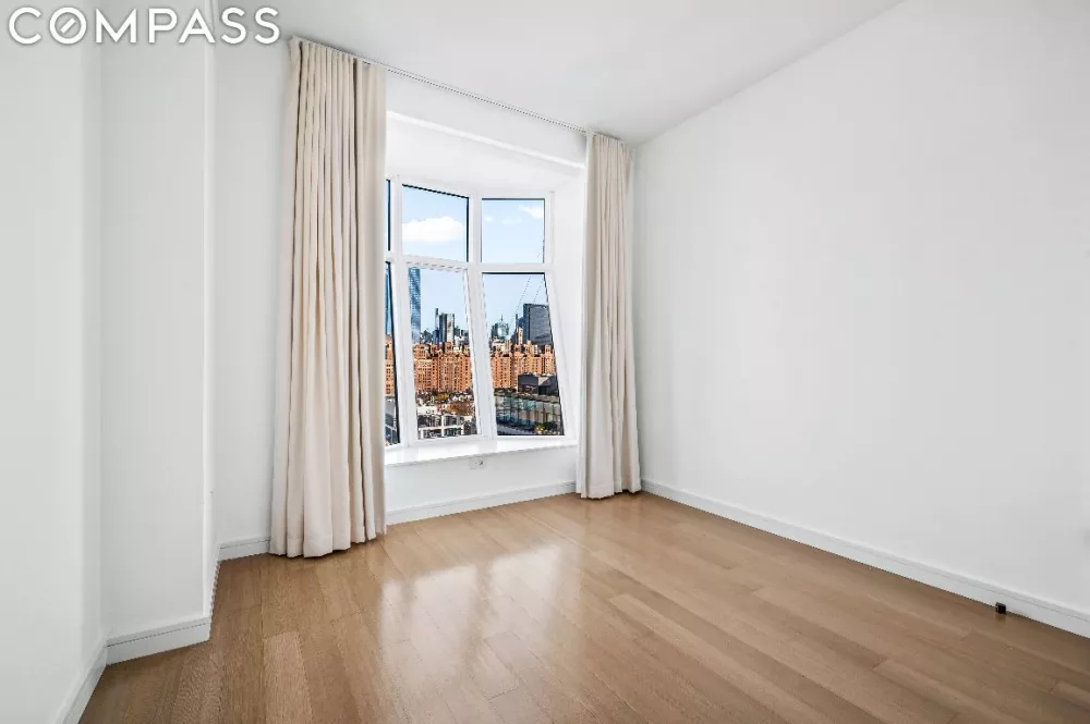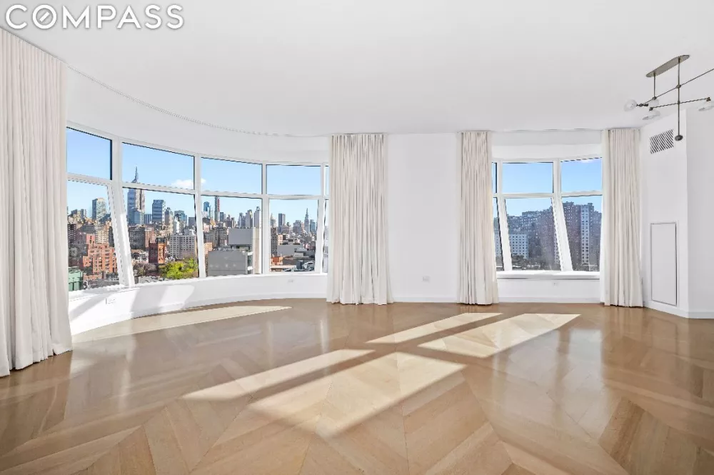 This expansive three-bedroom, 3.5-bathroom home enjoys breathtaking north and east exposures that showcase sweeping views of Manhattan’s iconic skyline. Enter through a gracious foyer that seamlessly opens into an oversized living and dining room, offering an inviting space for relaxation and entertainment.