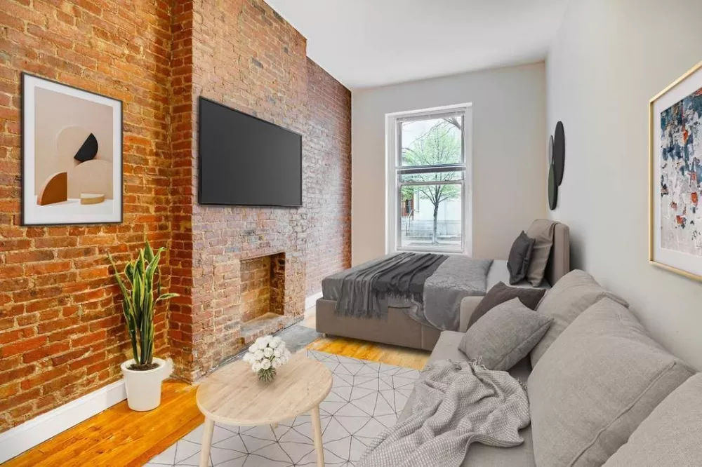 All views by appointment only, please email Seller’s Agent to schedule. Opportunity to own a piece of New York! Up the Stoop (above Street level) to this south facing studio on a lovely tree lined Street. This Co-Op home features charming exposed brick, a decorative fireplace, oversized picture window,... See more