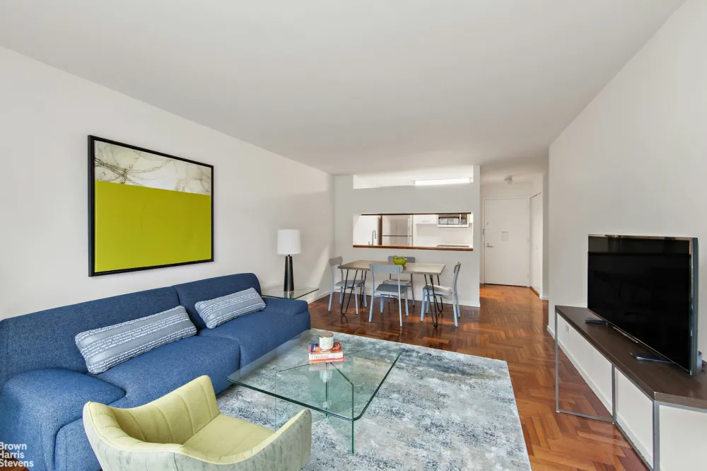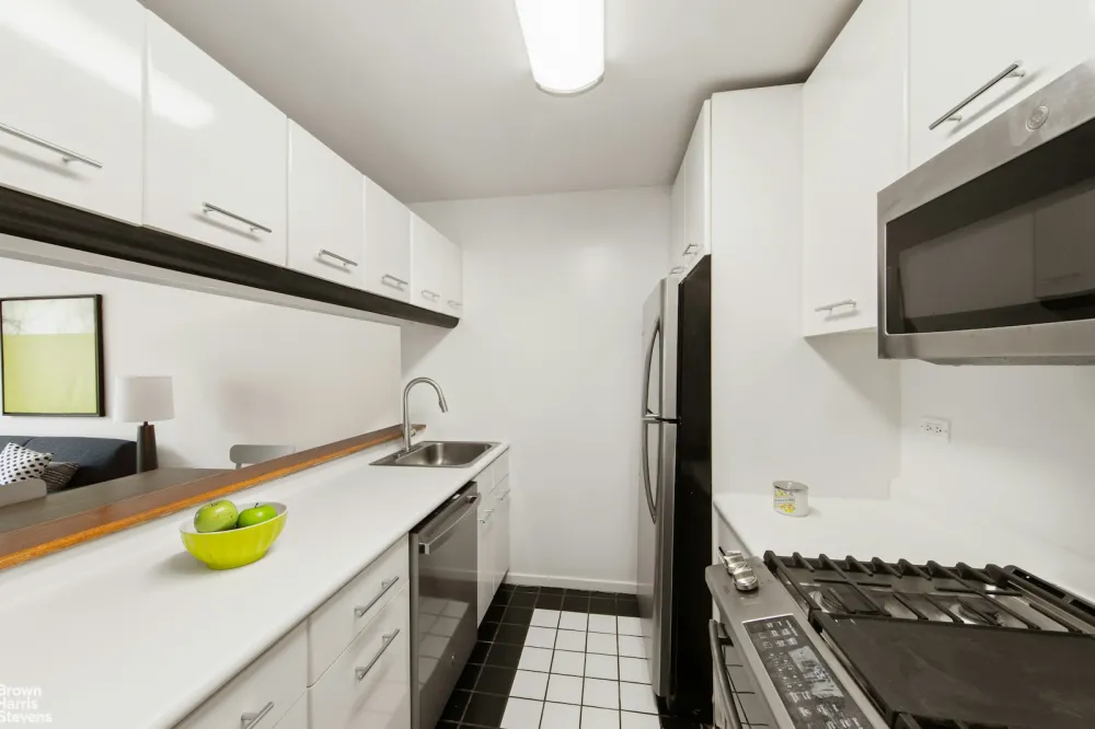 East-facing, high floor, 1 bedroom, 1 bathroom with abundant light and views of the Broadway Mall and the UWS. This sought after line is one of the largest in the building. The living dining area is ample in size and has a great picture window allowing for the sun to easily shine in and light up the...			See more