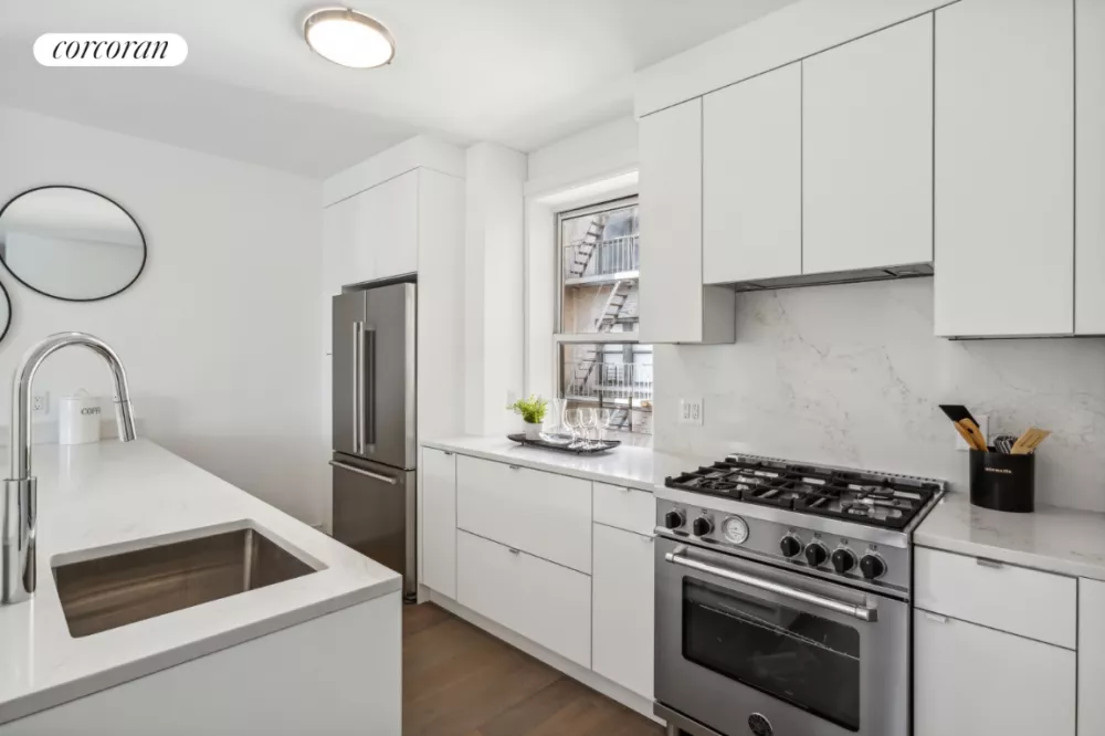 The heart is a grand living room with adjacent dining room. On the other side of the living room is an eat-in, windowed kitchen featuring timeless kitchen design including quartz countertops, generous counter space and a top of the line appliance package including Bertazzoni, Blomberg and LG. The oversized bedrooms feature ample storage space and an en-suite bathroom.