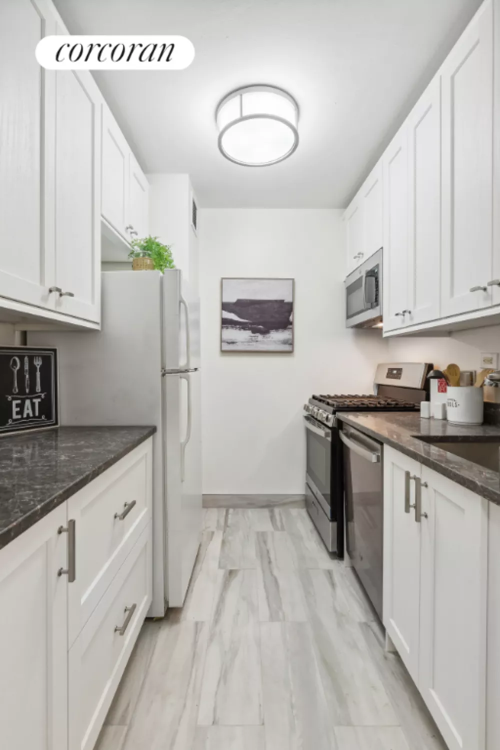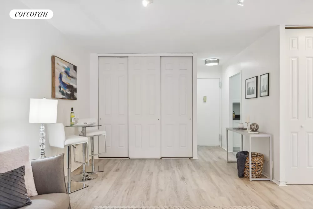 This newly renovated high-floor unit located on the 17th floor is bathed in natural light from generous windows facing west, enhanced by open city views overlooking Park Avenue South. The generous floor plan includes a beautifully renovated kitchen with stainless steel appliances, white shaker cabinets & quartz countertop. This unit also includes a renovated bathroom with a full-length vanity, new striking light-wood floors throughout the apartment, central AC/heat and an abundance of floor to ceiling closets with custom built-ins.