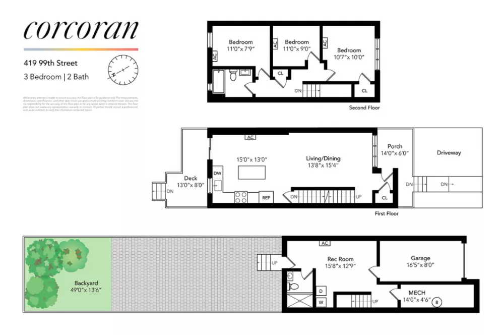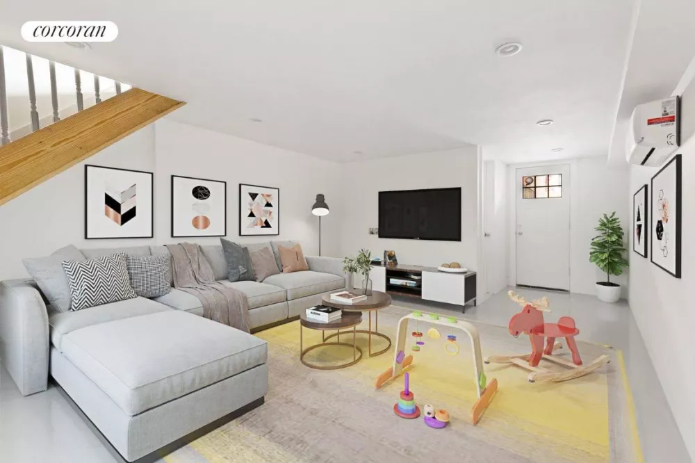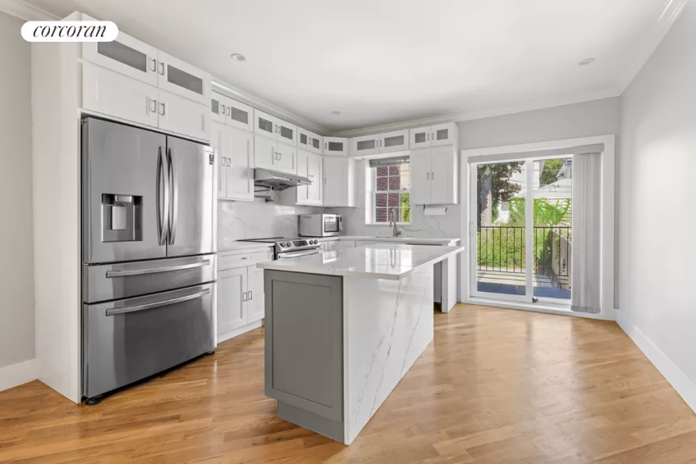Welcome to 419 99th Street, a charming Bay Ridge townhouse nestled in a bucolic setting. This home was originally built in 1935 and has recently been completely renovated. There are two bedrooms , one home office and two full bathrooms. The driveway leading to your garage provides direct access to the finished basement where you will find a large washer and dryer as well as access to the rear garden. No more searching for parking! Create your ideal space in this fabulous finished basement. The house has wonderful natural light, hardwood floors and a sleek open kitchen with center island. The kitchen features stainless steel appliances and white custom cabinetry. You have access to your front porch, outdoor deck and large backyard for fun and entertaining. The second floor has two bedrooms each with its own split units which provide both heat and air conditioning. The home office has a skylight as well as a split sysem. Additionally, all rooms have a split system. The ceilings are approximately 10.5" high. There is a modern full bathroom on the second floor as well as another full bathroom on the lower level. Both bathrooms have sliding glass shower doors, a window and a separate switch for heat. The very large backyard has a concrete pad 4" thick to withstand a Swim Spa which is a type of heated infinity pool which might be able to be installed .110 volt and 220 volt electrical outlets have been installed to accommodate this rare feature.