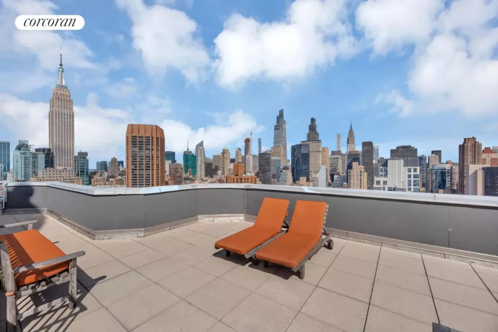 The Future Condominium provides a comprehensive range of amenities, including a 24-hour doorman, concierge service, fitness center, garage, three elevators, laundry room, bike room, and an on-site superintendent. Residents can also enjoy a beautifully landscaped outdoor plaza and an impressive rooftop deck, offering unobstructed views of the New York skyline, including iconic landmarks such as the Empire State Building, Chrysler Building, One Vanderbilt, and the MetLife Tower.