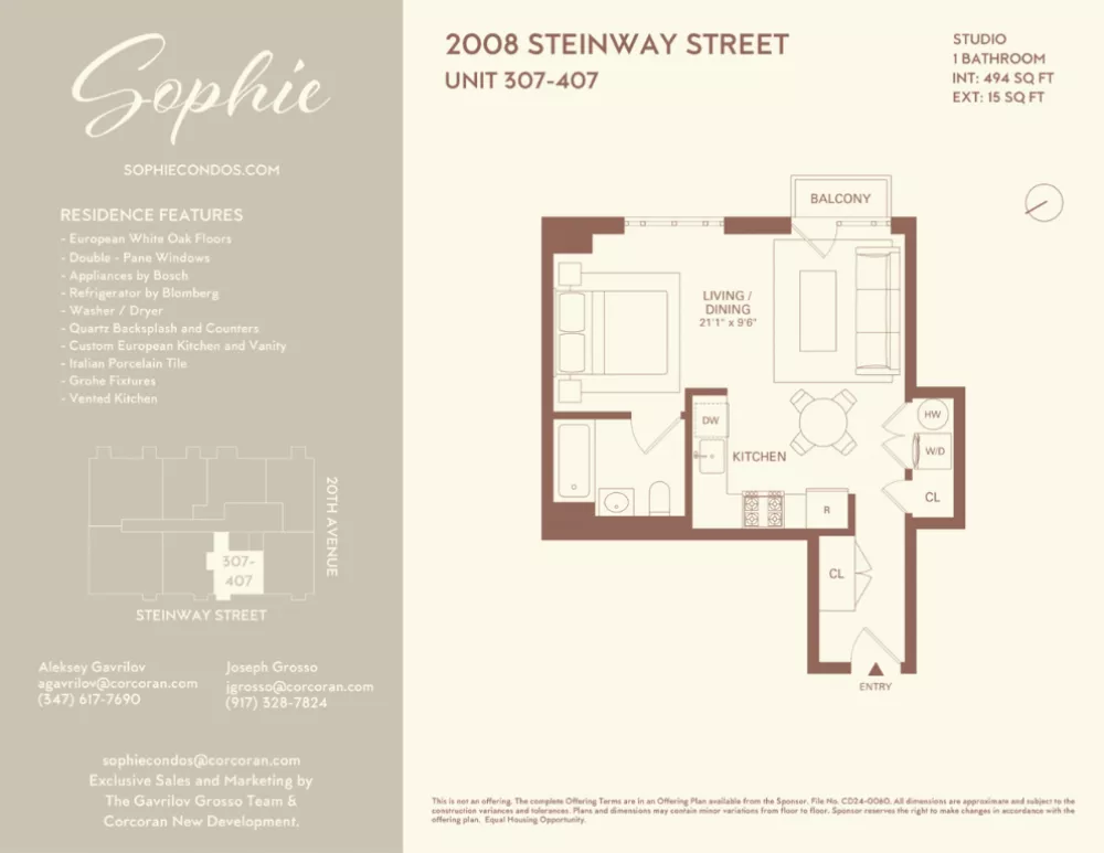 Now Offering Immediate Occupancy! Sophie Condominium is Now Over 25% Sold. This elegantly designed 494 square foot studio condominium residence offers a private balcony and southeastern exposures. Each residence features floor-to-ceiling oversized windows, wide-plank white oak flooring throughout, recessed...			See more