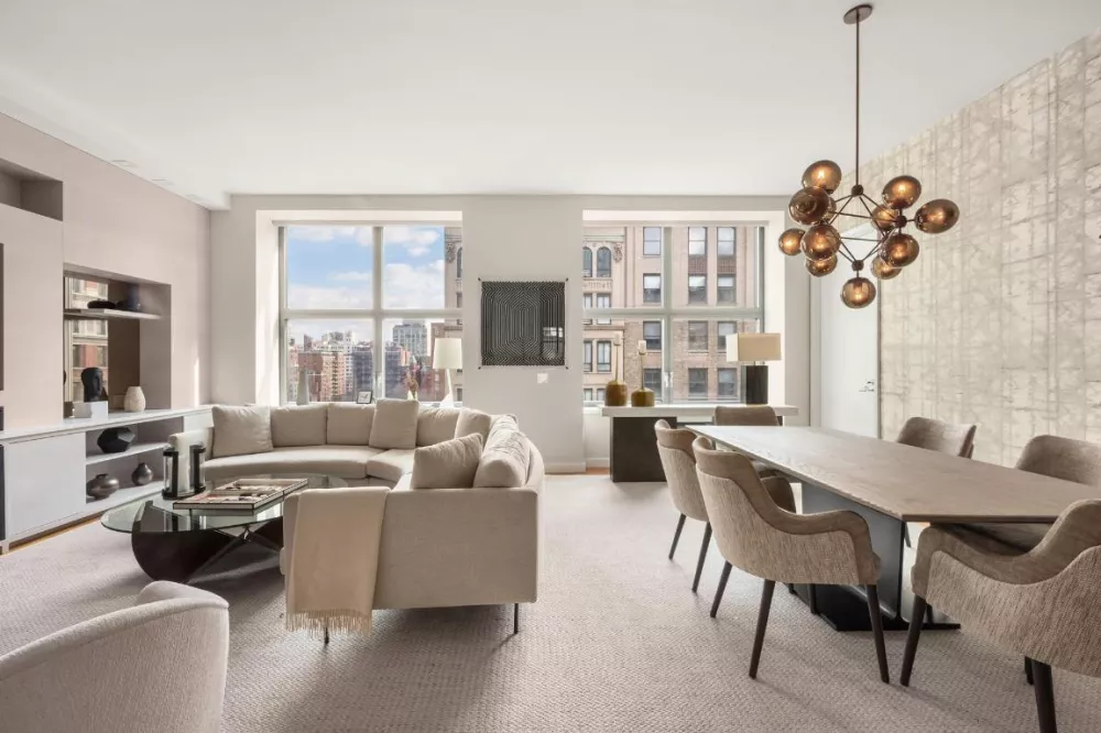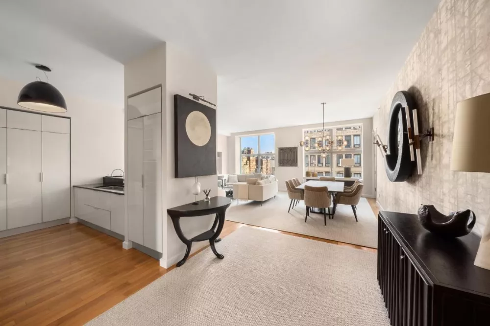 This spacious three-bedroom, three-and-a-half-bathroom residence at 240 Park Avenue South offers 2,139 square feet of refined living space with 10-foot ceilings, custom wood paneling, oversized windows, and hardwood floors. With views of Gramercy Park and Park Avenue South, the home is filled with natural light and designed for modern convenience.