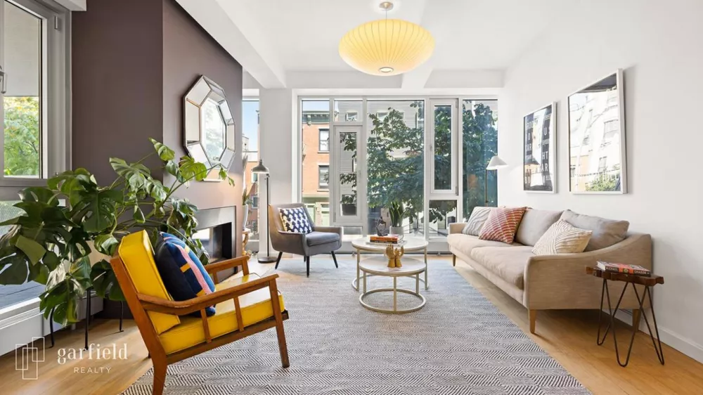 Welcome to this sun-filled 3BR/2BA on the 2nd floor of a well-maintained elevator condo, offering 1,228 square feet of living space, two expansive private outdoor spaces totaling 1,148 square feet, a gas fireplace as the living area’s focal point, and a common roof deck with panoramic views of the Manhattan skyline.