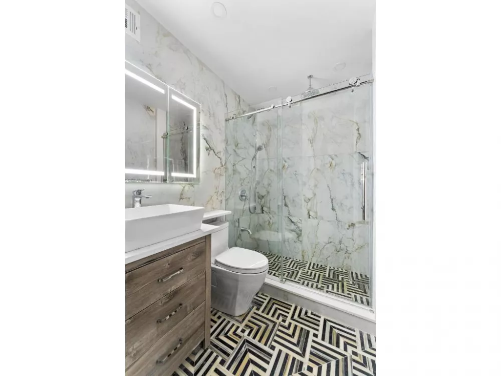 Brand New Full Gut Renovation! This peaceful, west facing apartment features brand new kitchen with white cabinetry, quartz countertops and new stainless steel appliances. A jumbo sized living room offers a spacious layout that easily accommodates a full-size dining table. An equally generous bedroom comfortably fits your king sized bed. The luxurious spa bathroom features a lighted vanity, marble flooring and stall shower complete with rain shower. Wide-plank hardwood floors throughout as well as an abundance of closets that are outfitted with custom shelving plus an in-unit WASHER/DRYER and private storage included free of charge. Pet Friendly. Photos virtually staged. Capital improvement assessment of $487.25 per month until Dec 2025.