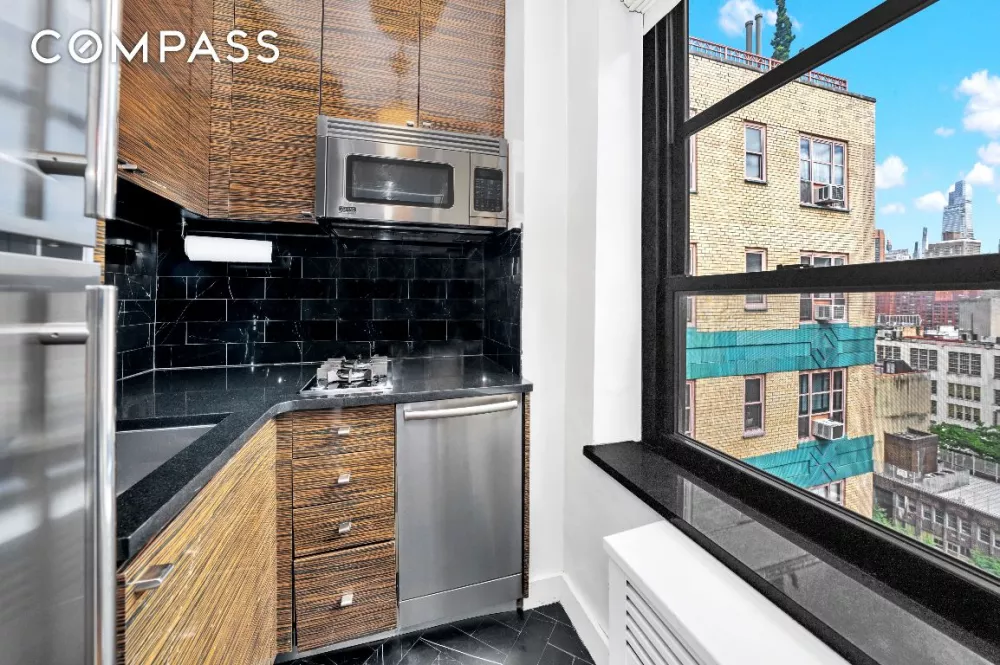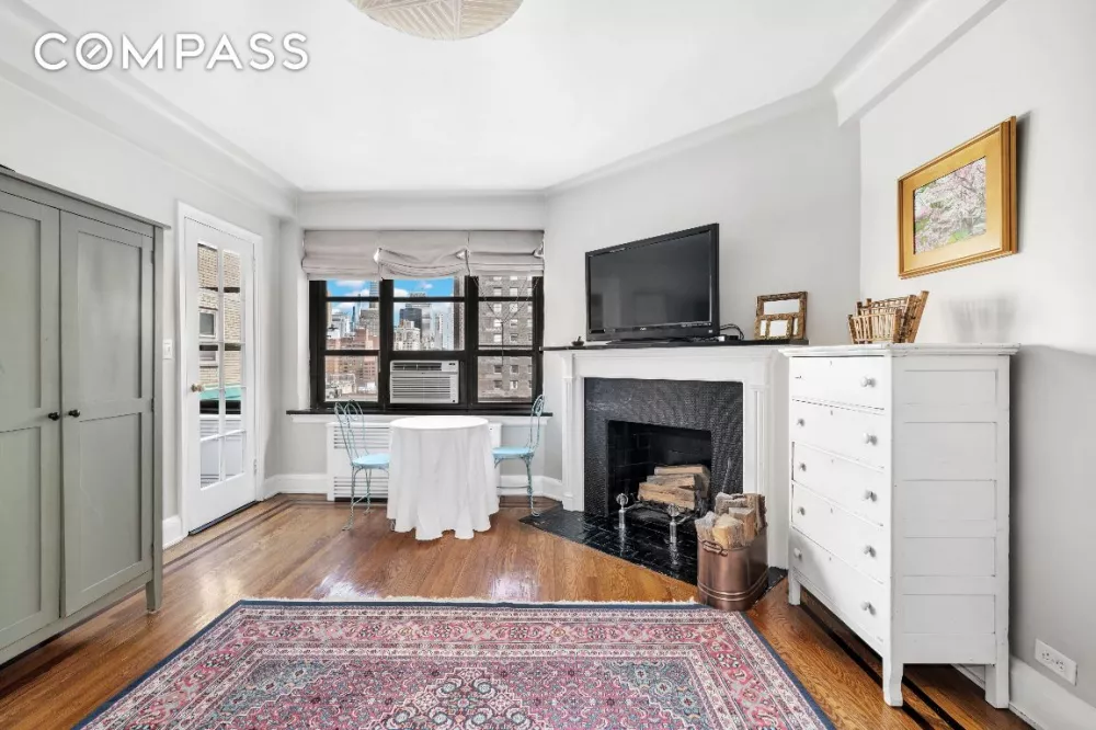 15M is a high floor studio in Gramercy House with expansive northern views showcasing some of the city’s most iconic buildings, including the Chrysler Building. 15M is also one of the few studios in the building that has a working wood-burning fireplace.