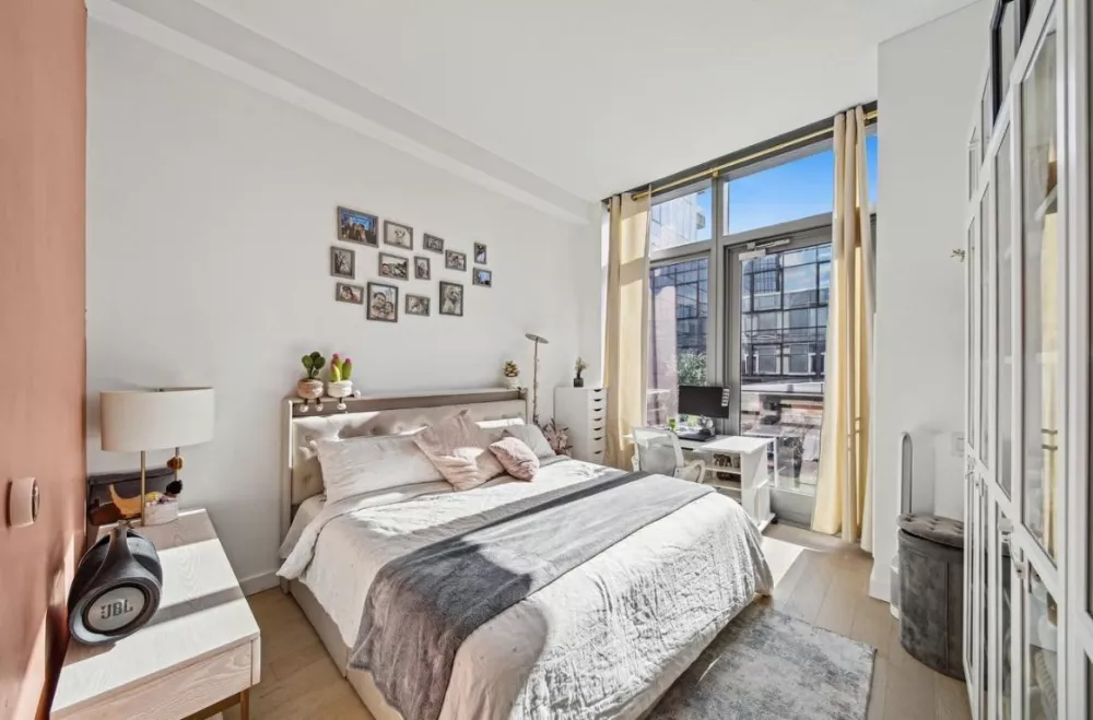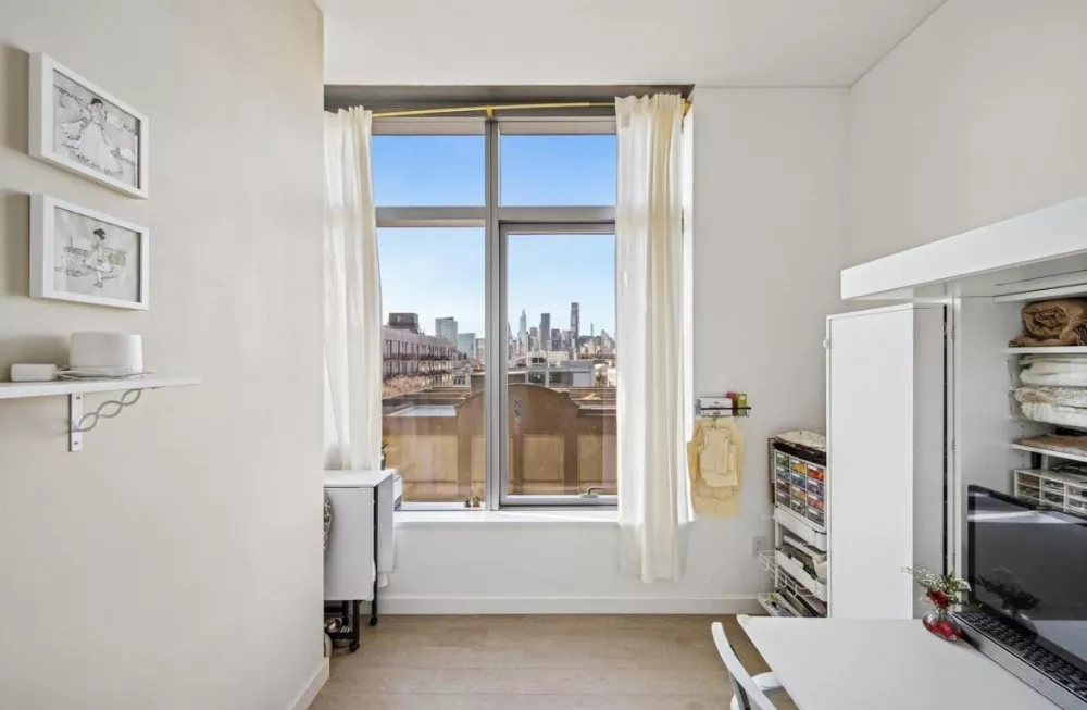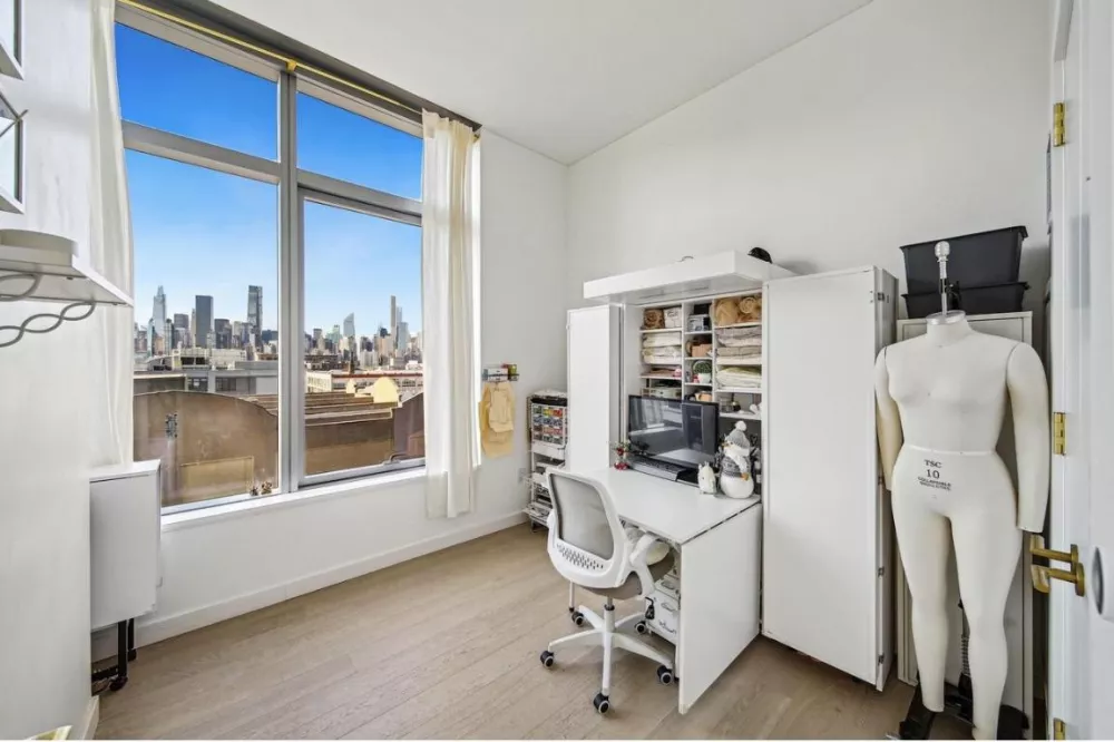 With 11-foot ceilings, enjoy breathtaking views of the Manhattan skyline. Thoughtful upgrades include custom California closets and window treatments.