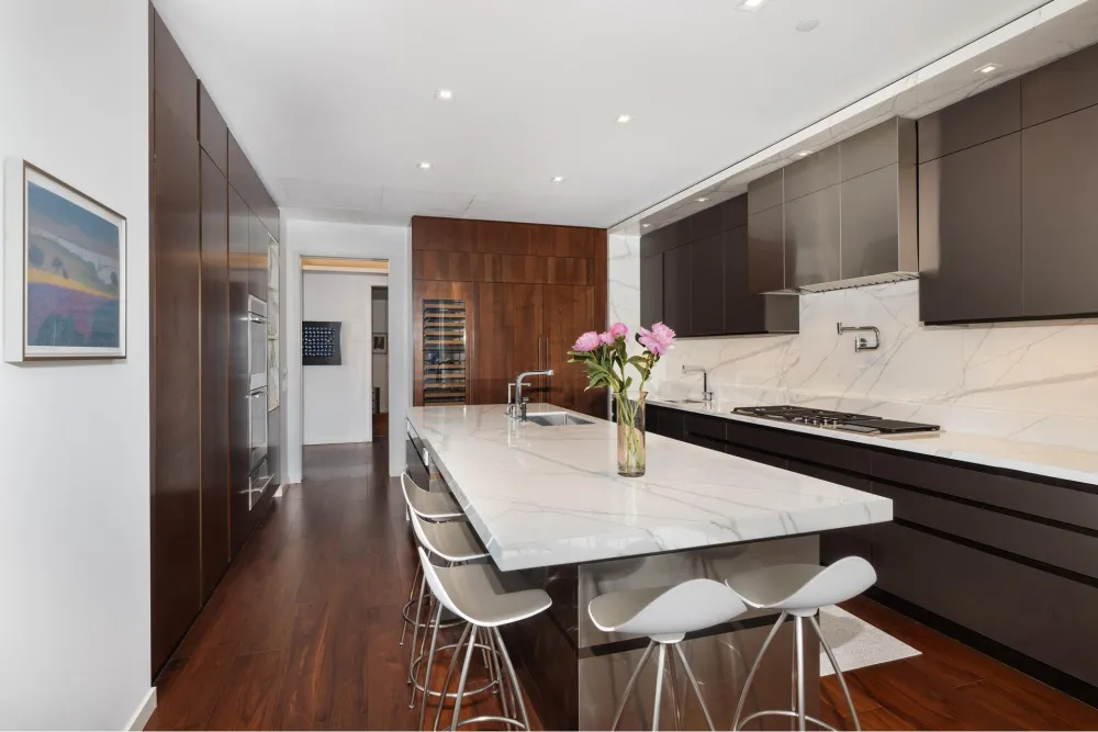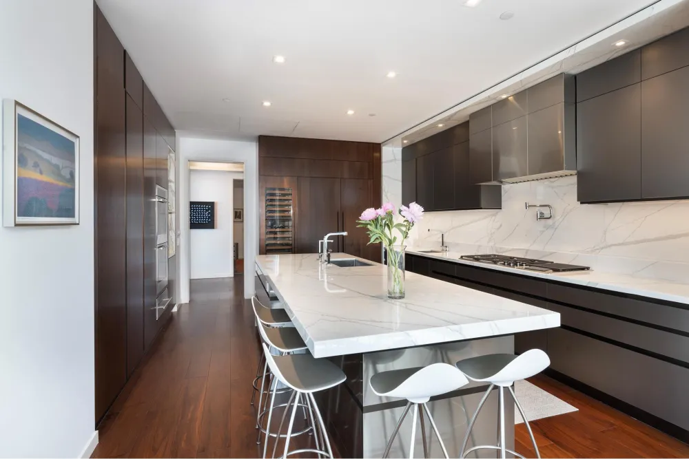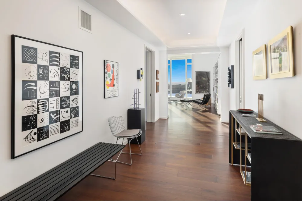 ONE OF A KIND RESIDENCE. The Epitome of Excellence at One West End Avenue.Nestled in the heart of the sky, Residence 29C is an exquisite 4-bedroom, 4.5-bathroom haven boasting 3,917 square feet of luxurious living space with three exposures: north, south and west.. With wide walnut plank flooring spanning 7 feet, lofty ceilings reaching over 11 feet, and expansive floor-to-ceiling windows framing captivating skyline views, this home offers a unique blend of elegance and sophistication.The highlights of this one-of-a-kind residence are the magnificent almost 40 foot wide great room with western water views, and the impressive custom eat-in Scavolini kitchen, meticulously designed by Jeffery Beers. Featuring opulent Dornbracht fixtures, walnut cabinets adorned with champagne matte glass panels, and exquisite Calacatta Borghini marble countertops, this culinary masterpiece is equipped with top-of-the-line Wolf cooktops, Sub-Zero refrigerators, 2 Miele dishwashers, and a built-in coffee station, and abundant storage..The oversized master suite exudes comfort and luxury, boasting tremendous closet space including an enormous walk in closet, and a lavish ensuite bath adorned with heated Bianco Dolomiti marble floors, brushed limestone walls, and marble slab countertops. Each secondary bedroom offers floor-to-ceiling windows and a private ensuite bath with marble floors, oak vanities, and Dornbracht fixtures.Additional features of this unparalleled residence include beautifully designed custom closets, a utility room with washer/dryer, year-round zoned temperature control via a 4-pipe fan coil HVAC system, and motorized solar shades.