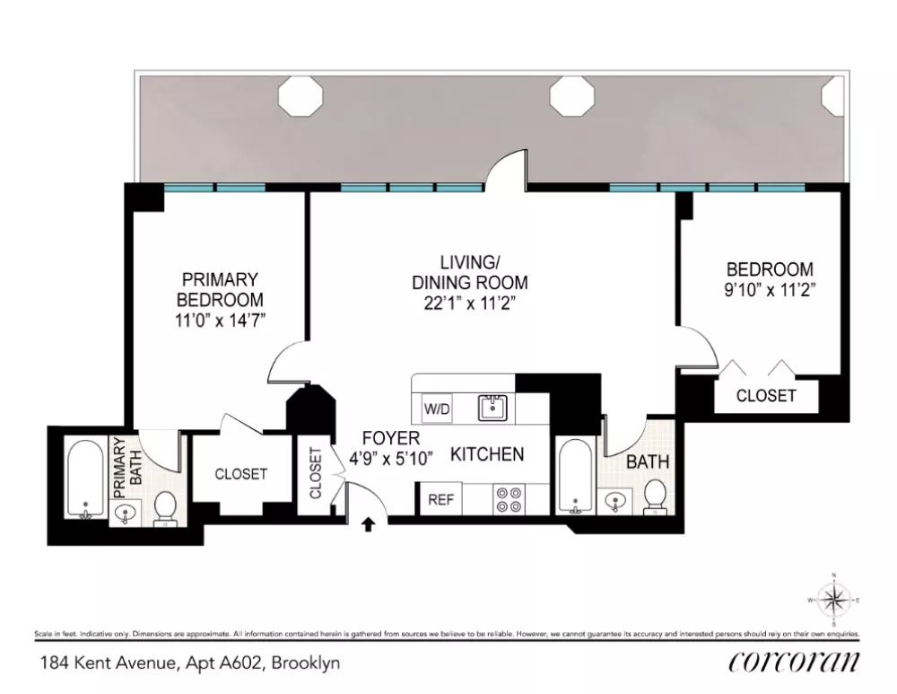 Within Austin Nichols House, a landmarked building on the North Williamsburg waterfront, Residence A602, a split two-bedroom home, is distinguished by its rare 280-square-foot terrace and nine oversized windows that frame open-sky views and fill the interior with natural light. The result is a uniquely calm and refined living experience-where indoor comfort meets outdoor space in one of Brooklyn's most architecturally significant full-service buildings.