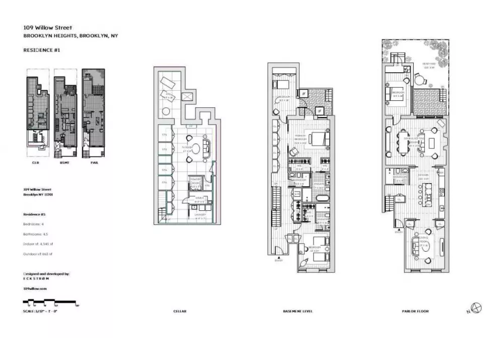Prominently located on a picturesque, tree-lined street in Brooklyn Heights, the townhouse at 109 Willow Street offers three house sized residences that emulate the comfort and space of living in your own brownstone while enjoying the convenience of a move in ready, never lived in and gut renovated boutique three unit condominium. Fully updated and redesigned in the soft minimalist style, ECKSTROM has again created a home that focuses on well being by refining the spaces into their purest form using honest, natural materials and simple forms.
