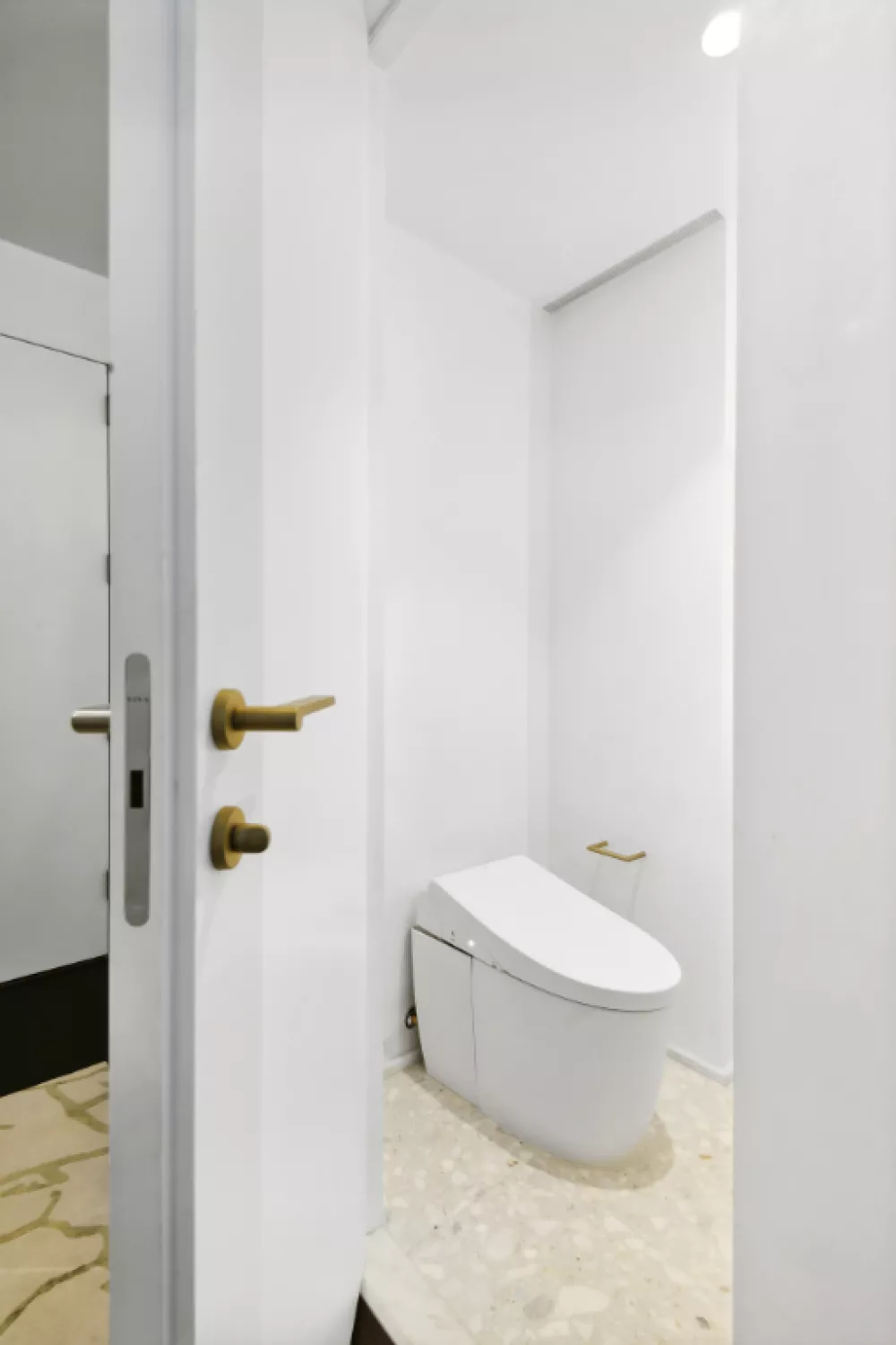 The open kitchen is a chef's dream, featuring honed marble countertops, Fisher & Paykel appliances, a slate floor, and ample storage space. The tranquil bedroom includes two generous closet areas and a built-in desk, for your computer or a workspace. The en-suite bath boasts a huge walk-in shower, providing a spa-like experience in the comfort of your own home.