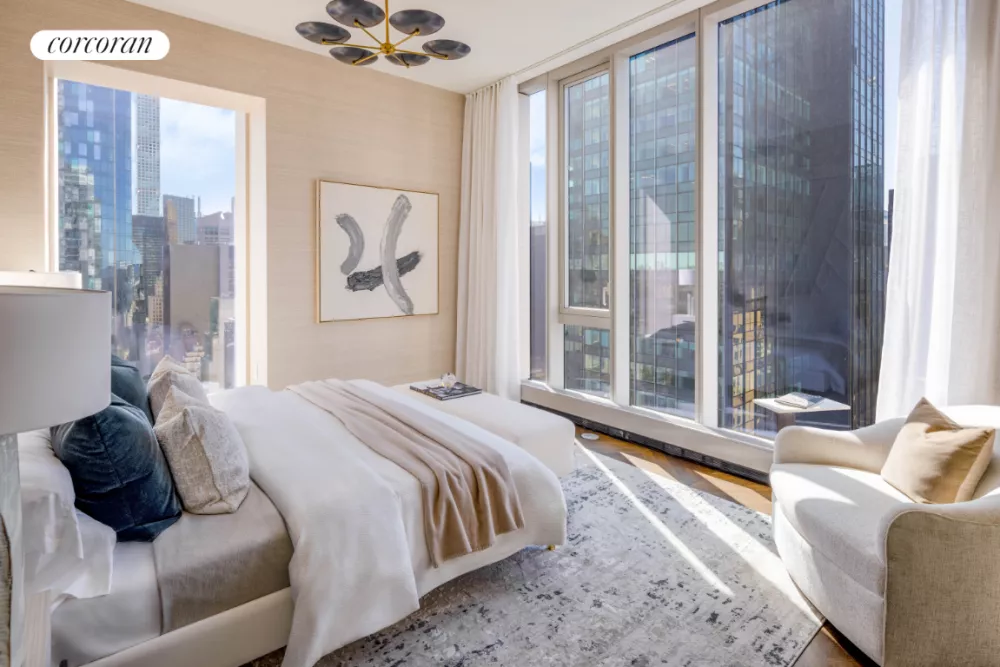 This corner two bedroom, two-and-a-half-bathroom home at Central Park Tower boasts a gracious and intelligent floor plan. Residence 36D features both south and east exposures and breathtaking views of the iconic Manhattan skyline from an elevation of 375 feet. Soaring ceiling heights of 10'7" and floor-to-ceiling glass spanning the entire residence allow for an abundance of natural light. The formal entry foyer and gallery lead to an expansive great room featuring south and east facing views. This luxury residence is designed for grand entertaining with a corner living room and large dining area. The gourmet kitchen is complete with custom cabinetry by Smallbone of Devizes and premium Miele appliances. The bedroom layout provides for privacy and comfort with en-suite bathrooms in each bedroom as well as a separate powder room. The primary bedroom suite features an oversized walk-in closet and a luxurious marble-clad bathroom. Extell Development Company proudly presents Central Park Tower, a monumental vision fully realized. Standing at 1,550 feet above New York City, Central Park Tower is the tallest residential building in the world featuring stunning architecture by Adrian Smith + Gordon Gill and elegant interiors by Rottet Studios. Central Park Tower is proud to be one of the top-selling buildings of all-time in Manhattan. Central Park Tower's superior lifestyle is assured by the building's private Central Park Tower Club, with 50,000 square feet of unprecedented amenities. The pinnacle of the Club is 10Cubed, located on the 100th floor (at an elevation of 1,000 feet, hence its name), offering private Michelin-star dining and one of the world's highest ballrooms. Boasting astonishing views, with cuisine, decor, and service all meticulously curated by celebrity event planner Colin Cowie, 10Cubed is an unparalleled dining and entertaining experience at an intimate or a grand scale. The Club features an expansive, outdoor landscaped Terrace, a 60-foot saltwater pool, and an outdoor movie theater with bar and grill. Indoor recreation amenities include a sunlit saltwater lap pool and hot tub, a double-height windowed sports court, and a high-tech fitness center. Restorative treatments are offered at The Club's spa, with both steam and sauna. The Club features a private screening room, a business center, and The Living Room residents lounge with soaring ceilings, billiards, and comfortable areas for relaxing and hosting. Central Park Tower is a new landmark, with unforgettable views, incomparable amenities, and a lifestyle that is above all else. Closings have commenced, immediate occupancy is available. The complete terms are in an offering plan available from the Sponsor. File No: CD16-0240. Equal Housing Opportunity.