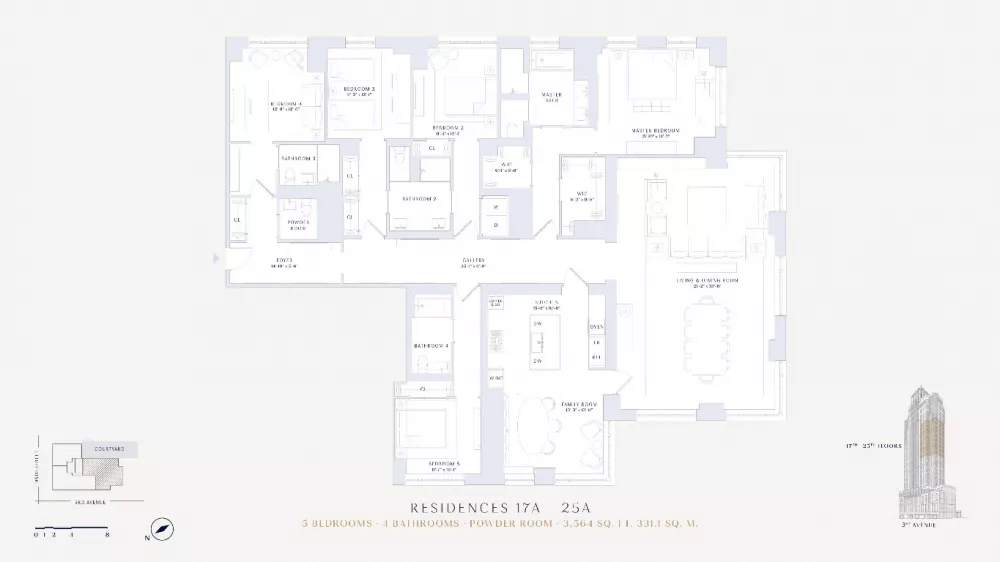 This exceptional 5 bedroom, 4.5 bathroom residence offers 3,564 square feet of living and entertaining space. Enter this gracious residence through a formal gallery and enjoy the spacious eat-in kitchen and expansive living and dining room. Expansive south, east and west-facing exposures offer open views of the city and East River. 18A is finished in our Ebony Color Package.