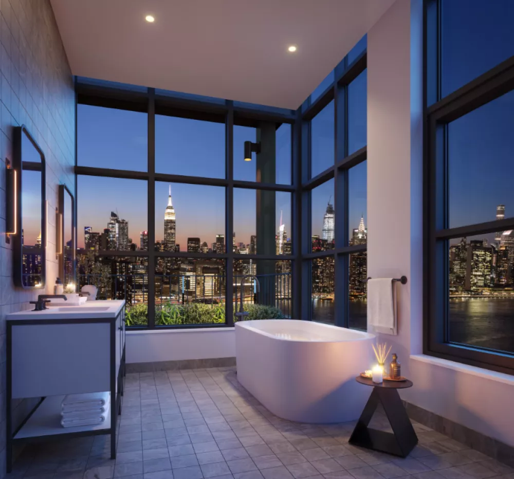 Introducing this brand new 2-bedroom, 2-bathroom corner condo with a 96 square foot balcony offering an amenity-rich waterfront lifestyle in one of Brooklyn's trendiest neighborhoods. Interiors are timeless in their design and evoke casual elegance. Airy ceilings and wide plank engineered oak floors frame floor-to-ceiling windows with startling views of the East River and Manhattan skyline. Quiet, energy-efficient multi-zone VRF heating and cooling is paired with a WiFi-enabled Nest thermostat.