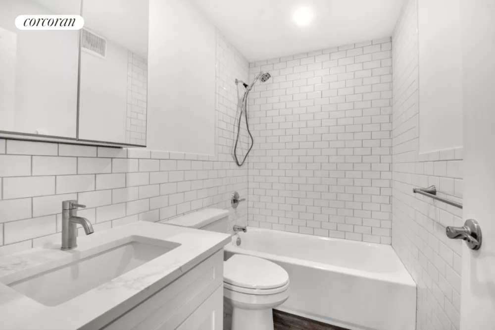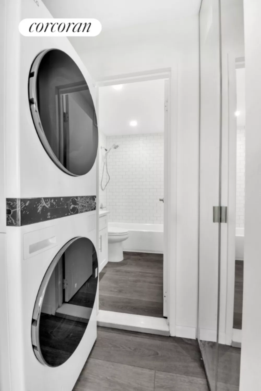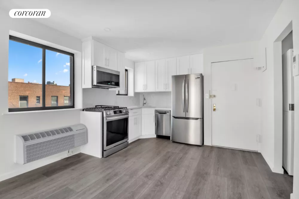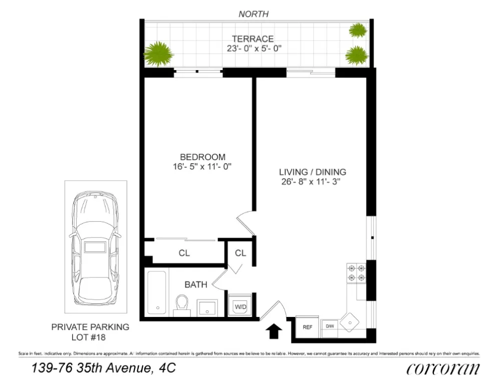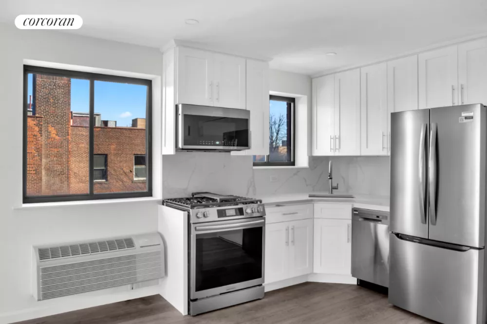 YOUR OWN GARAGE PARKING SPOT included with the deed!!!! With all new renovations completed in 2025, this beautiful CONDO is guaranteed to check off all of your boxes. Sliding glass doors lead out to the PRIVATE BALCONY which spans the entire length of the apartment. You will love the brand-new kitchen, with marbleized quartz backsplash and countertops, custom wooden cabinets and Frigidaire Gallery appliances. Stainless 5 burner gas range with total convection, 20 cubic feet capacity French door refrigerator with water dispenser and ice maker, stainless dishwasher & over-the-range microwave. The spacious living room spans over 26' long and 11' wide, and can fit many furniture configurations including a home office setup, formal dining set, or even a grand piano and oversized sectional! King sized bedroom with floor-to-ceiling closets, modern 3 blade fan, and built in AC. The large ceramic tiled bath is conveniently located between the living room and bedroom, with cultured stone vanity, deep porcelain sink and chrome fixtures. 8' ceilings and commercial grade luxury vinyl plank floors throughout. Oversized in-unit LG stacked WASHER AND DRYER with floor to ceiling mirrored linen closet, the perfect laundry nook. Parsons Plaza is an elevator condo building with interior garage, full time super, fob intercom and welcoming glass lobby. Located on 35th Avenue, you will be close to the 7 Train, LIRR, Northern Blvd and a plethora of local dining and shopping. Incredibly low monthlies and stove gas included! Be the first to enjoy this completely renovated gem, a fantastic home and future investment!